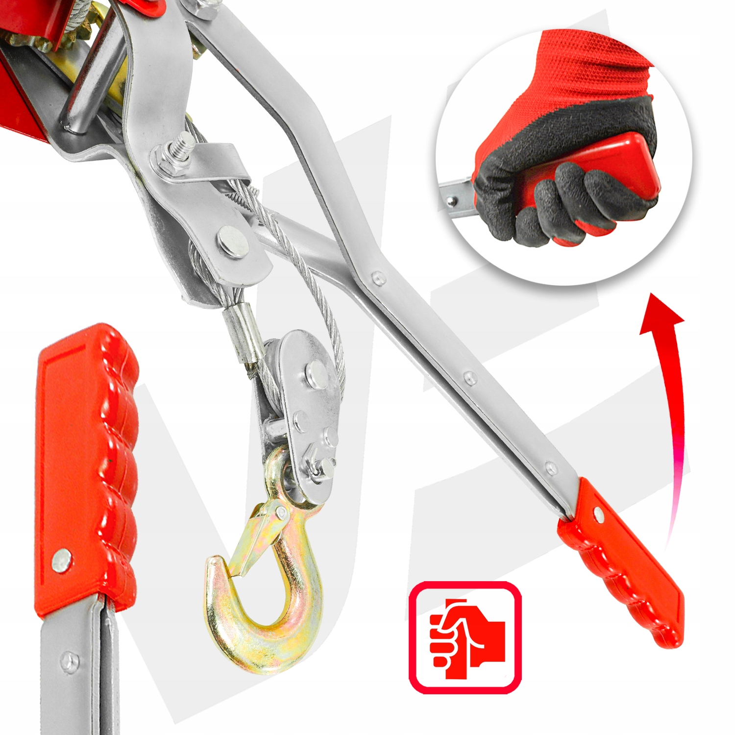 Оснащений сталевим тросом діаметром 5 мм і міцним важелем з храповим механізмом, він гарантує повний контроль і безпеку. працювати навіть у важких умовах.