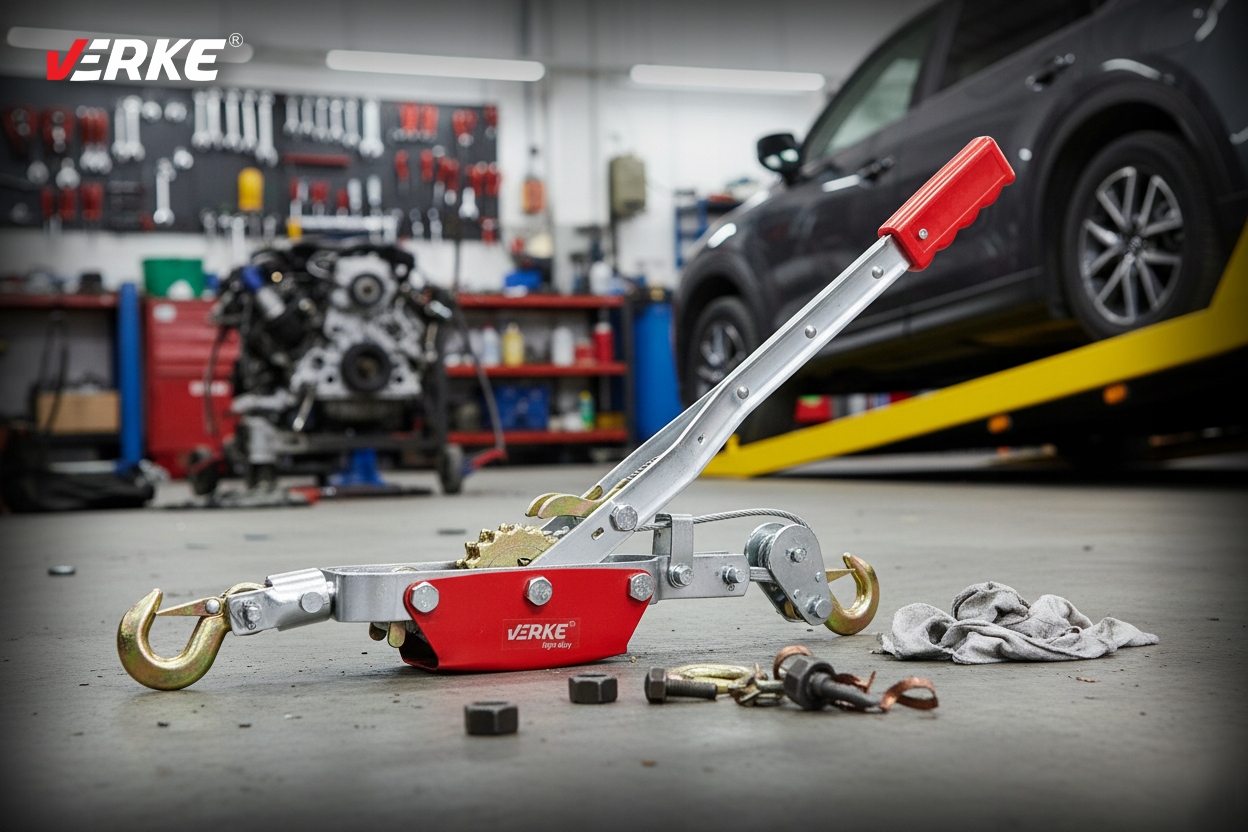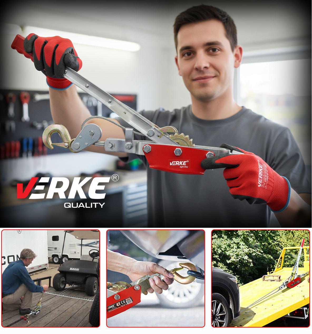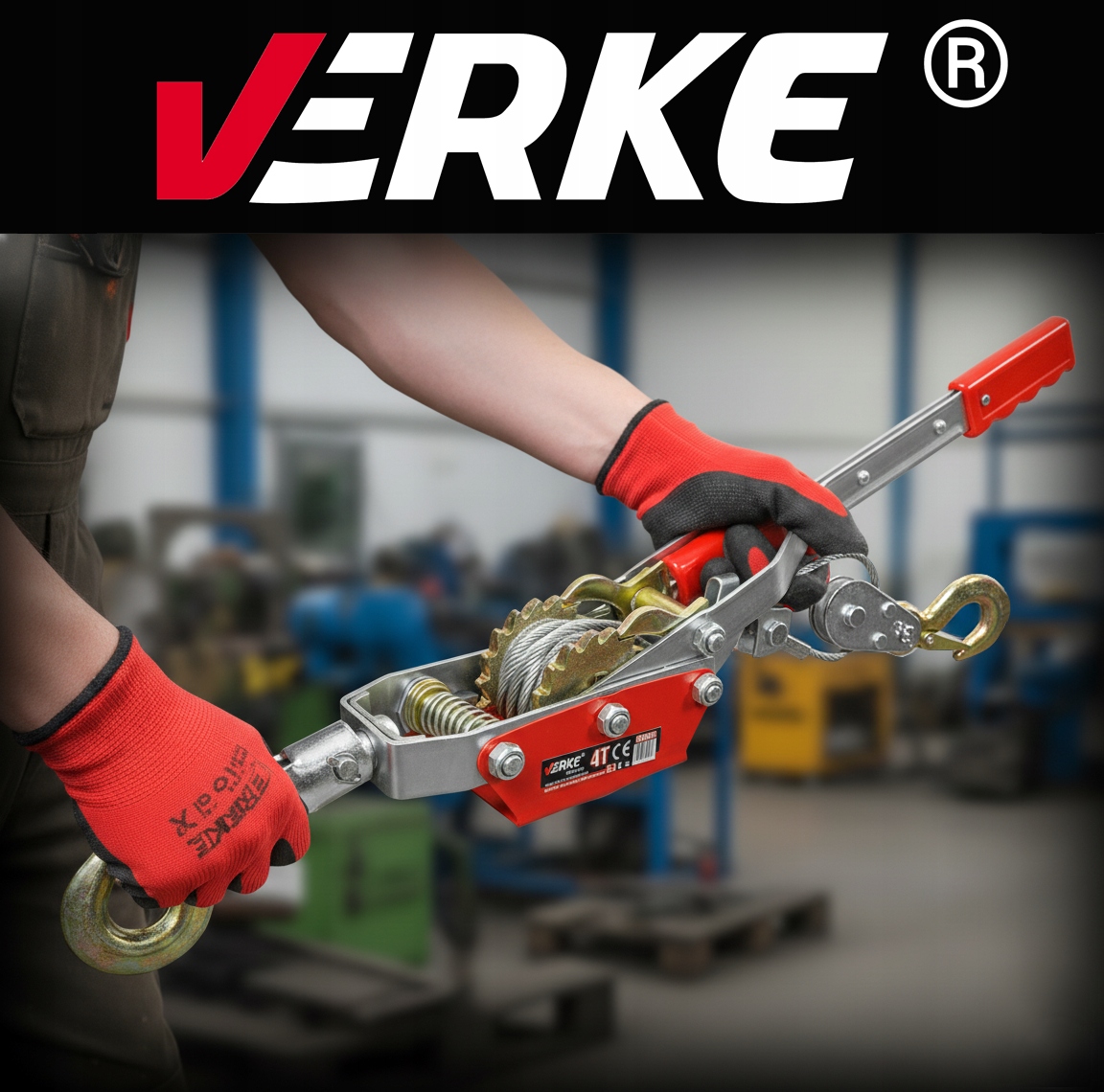 Канатна лебідка VERKE 4T — це незамінний інструмент для майстерень і польових робіт, призначений для підтягування, підйому і натягування важких вантажів у горизонтальній площині.
