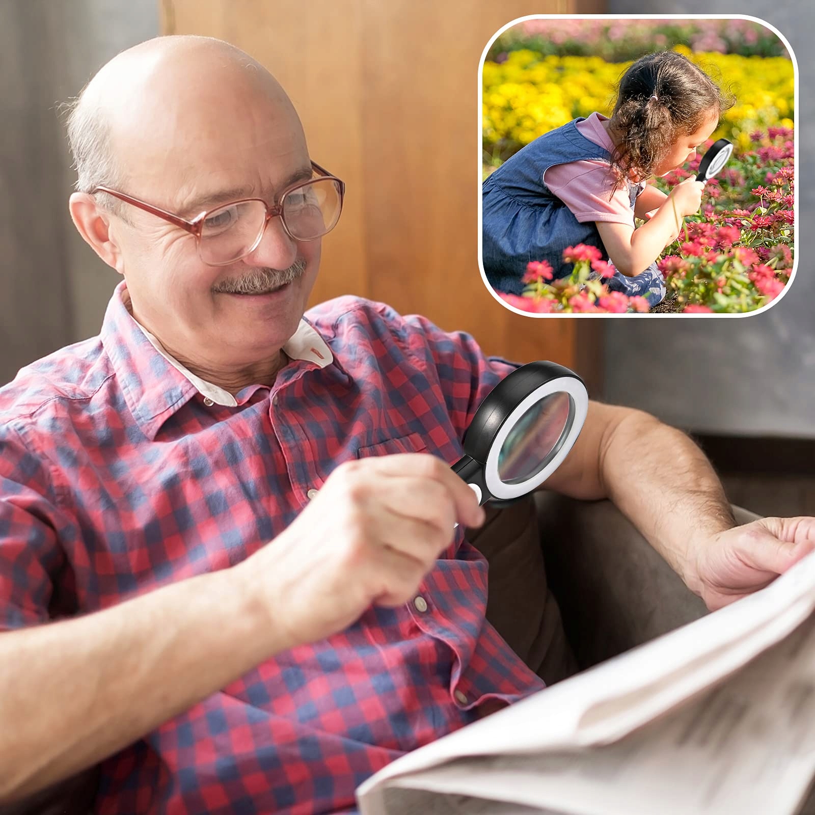 Великий лупа для людей похилого віку, у більшості людей похилого віку важко прочитати невеликий друк на купонах, рецептах та медичній пляшці. Прозорий лупа зі світлом також є чудовим вибором для тих, хто має низький або порушений зір більшості типів.