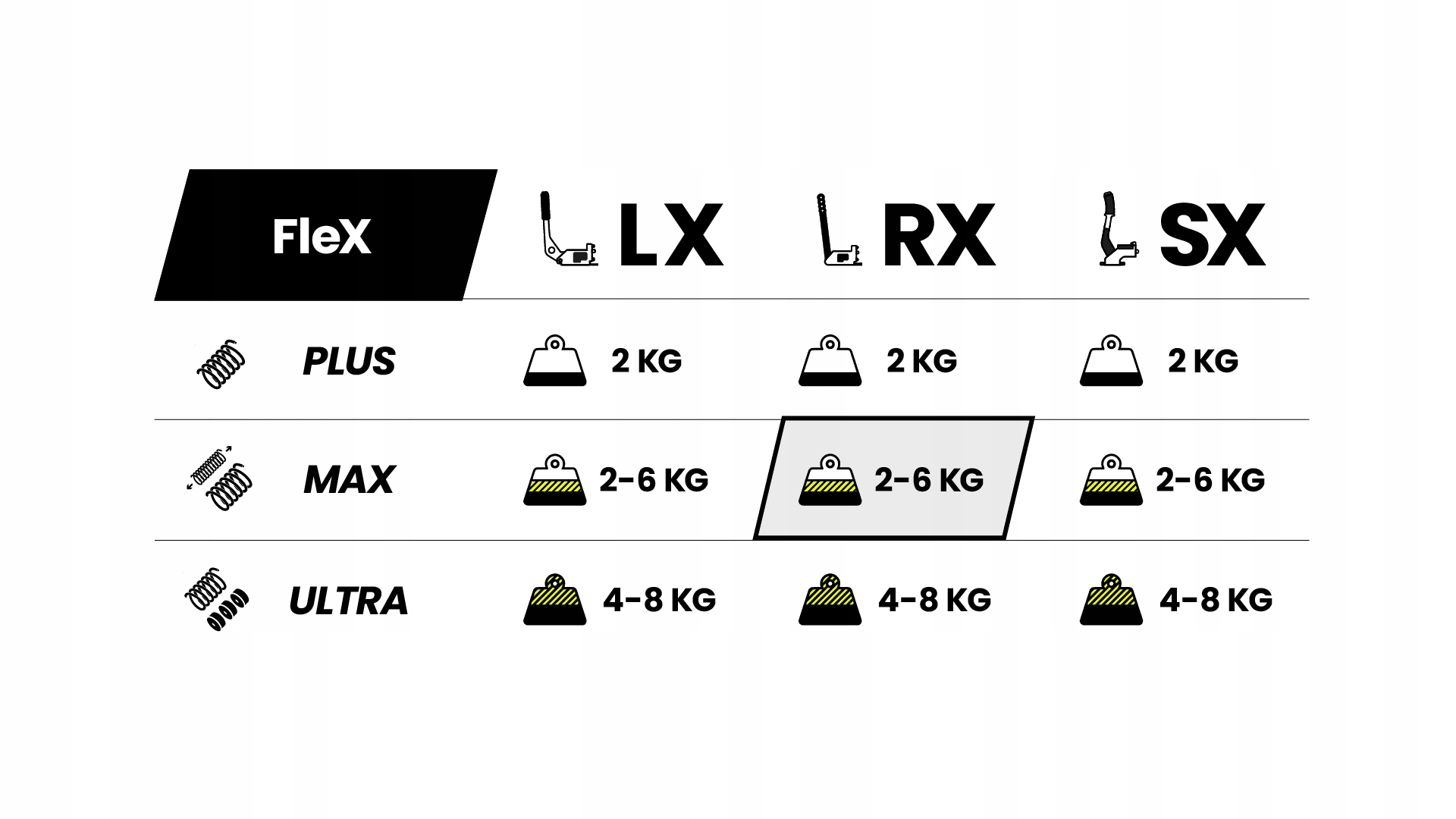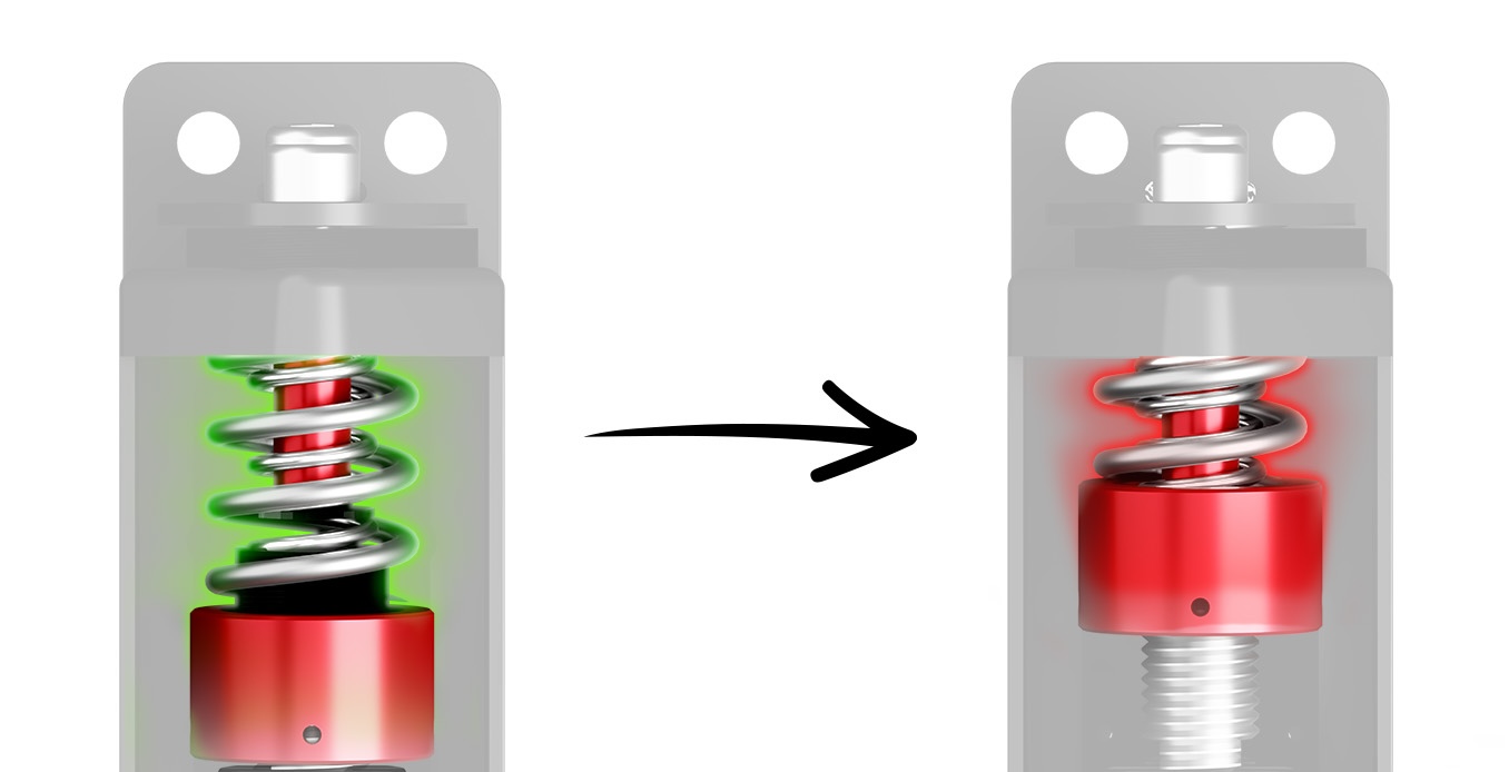 Інноваційна система з двома пружинами забезпечує точний контроль опору важеля. Внутрішня (менша) пружина забезпечує початковий натяг важеля, а регулювання стиснення зовнішньої (більшої) пружини за допомогою алюмінієвої (червоної) гайки дозволяє плавно регулювати зусилля до 6 кг.