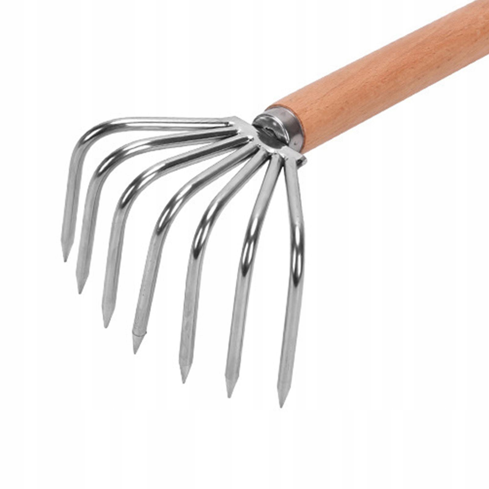 [багаторазові], садівничі граблі можуть бути використані для обертання, розслаблення, мульчування, вирощування, витягування листя та невеликих каменів, копання, прополки та посадки; Для зловживання мідій/морепродуктів/лусочок також можна використовувати багатофункціональну підтягнуту граблі.
