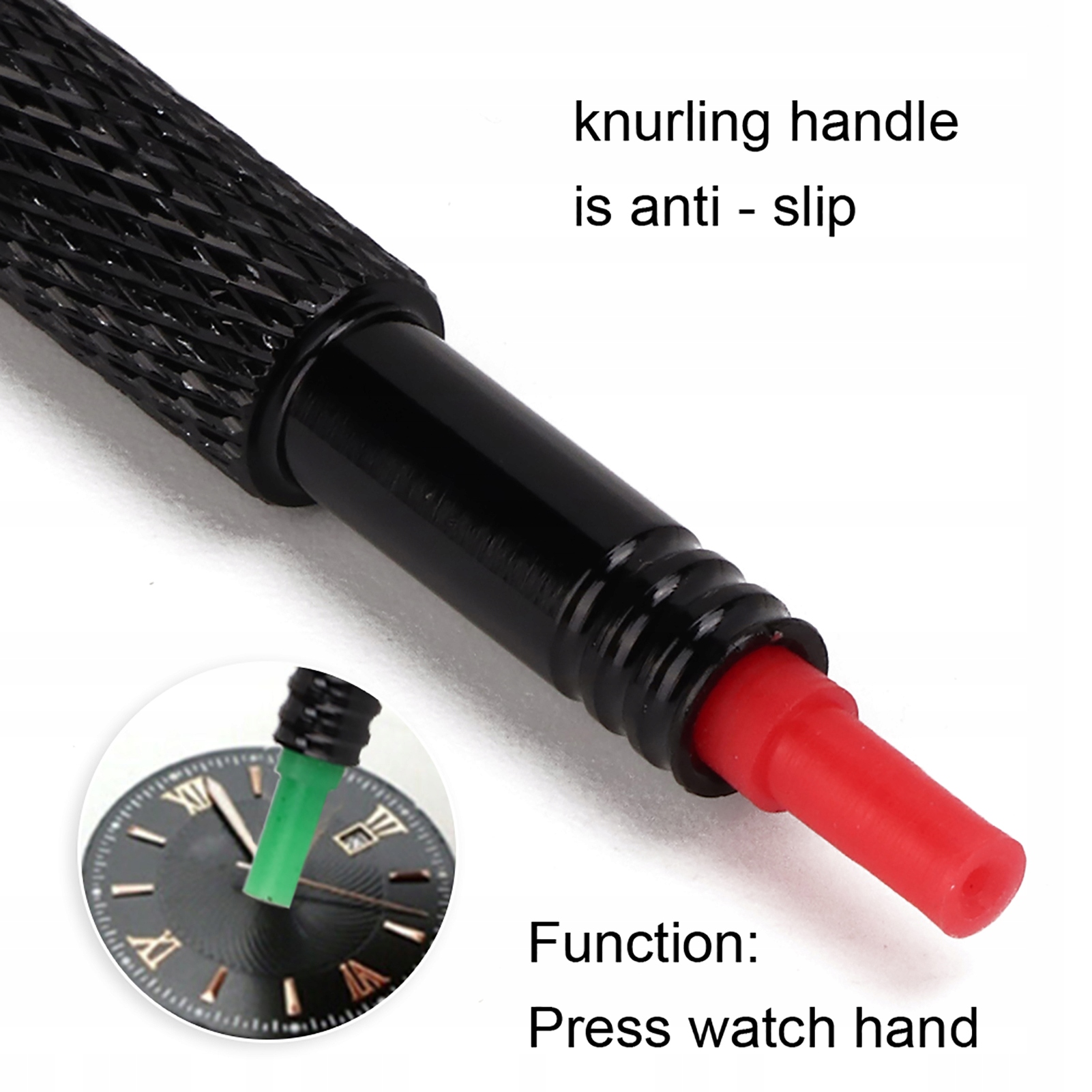1. Професійний інструмент для натискання на підказки годинника, спеціально розроблений для натискання на посібник з годинника. Відмінний і компактний, легкий у перенесенні та зберігання. Розумна конструкція, ручка, що не має. Подвійна головка наконечники прес -годинника, виготовлена з алюмінієвої ручки та пластикової головки. Чудовий інструмент для ремонту різних підказок, хвилинних та другого годинника.