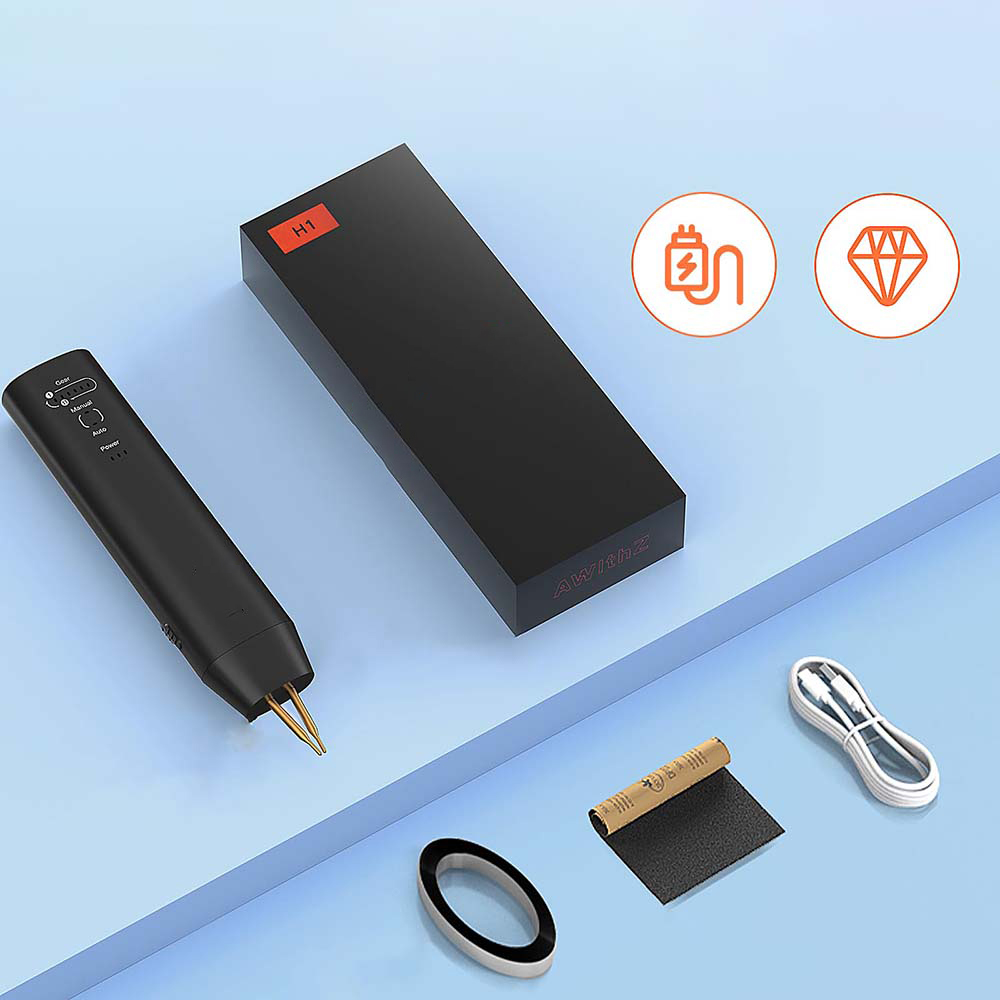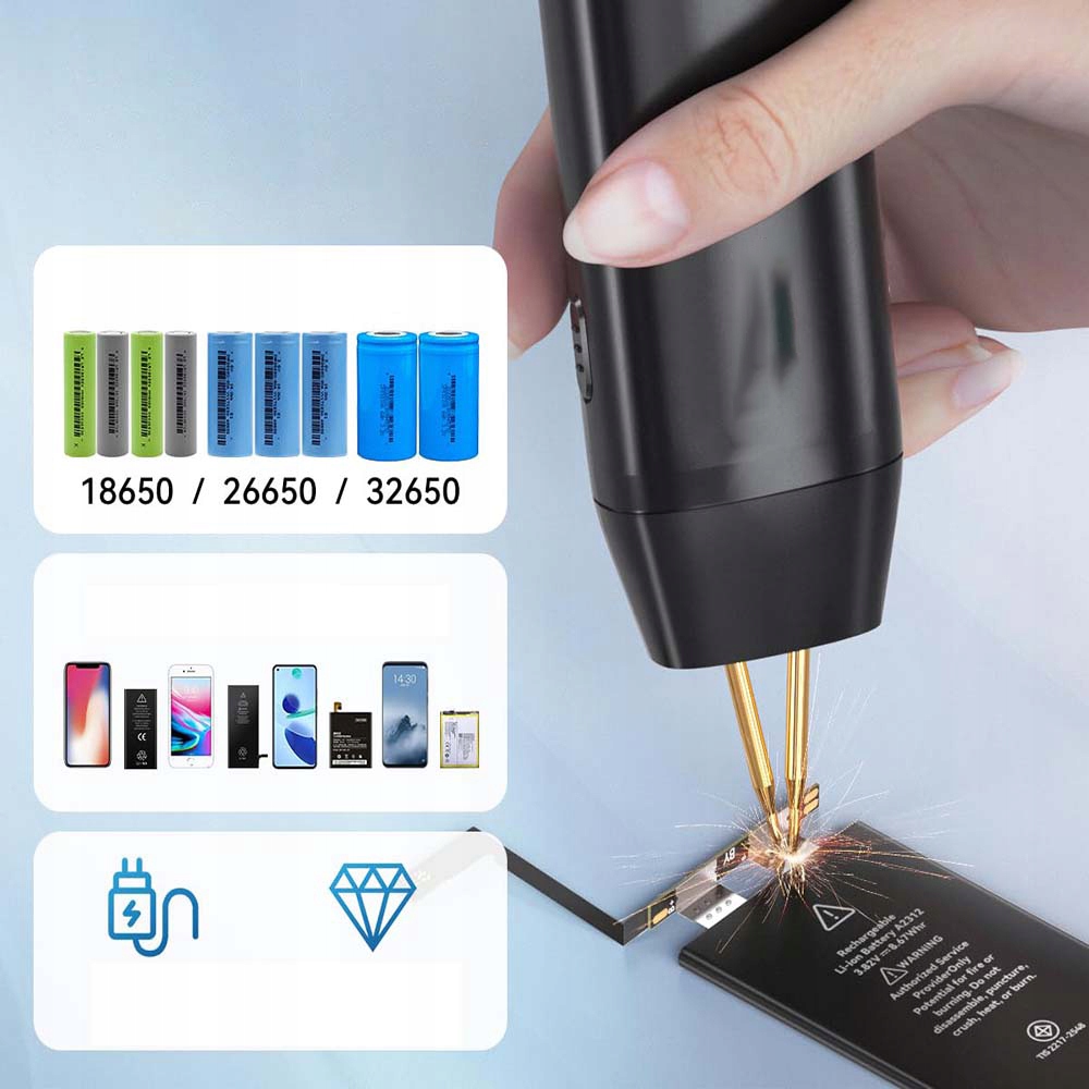 🔋БЕЗ ручки для точкового зварювання ------ Немає необхідності використовувати ручку для точкового зварювання, коли ви йдете чи вдома, ручний апарат для точкового зварювання, який не потребує додаткових ручок для точкового зварювання, носити з собою і зручно їхати куди завгодно. Він поєднує в собі вбудований блок живлення та зварювальне перо, що полегшує зварювання без необхідності зовнішнього зварювального пера.