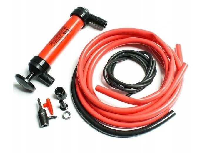 Завдяки цьому ми можемо злити паливо з бака або насосного масла. Просто зануріть один кінець рідкого кабелю в рідину і покладіть шланг для розетки в ємність і почніть накачувати рідину поршнем!