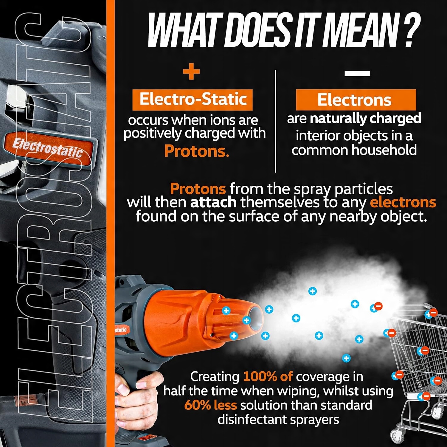 - Унікальний: наш електростатичний розпилювач ULV поєднує в собі найпередовішу технологію як розпилювачів ULV, так і електростатичних розпилювачів. Наш пристрій здатний створювати дуже невеликі падіння об’єму нижче 50 м/мм (мікрон), що дозволяє охоплювати 360° за допомогою електростатичної технології.