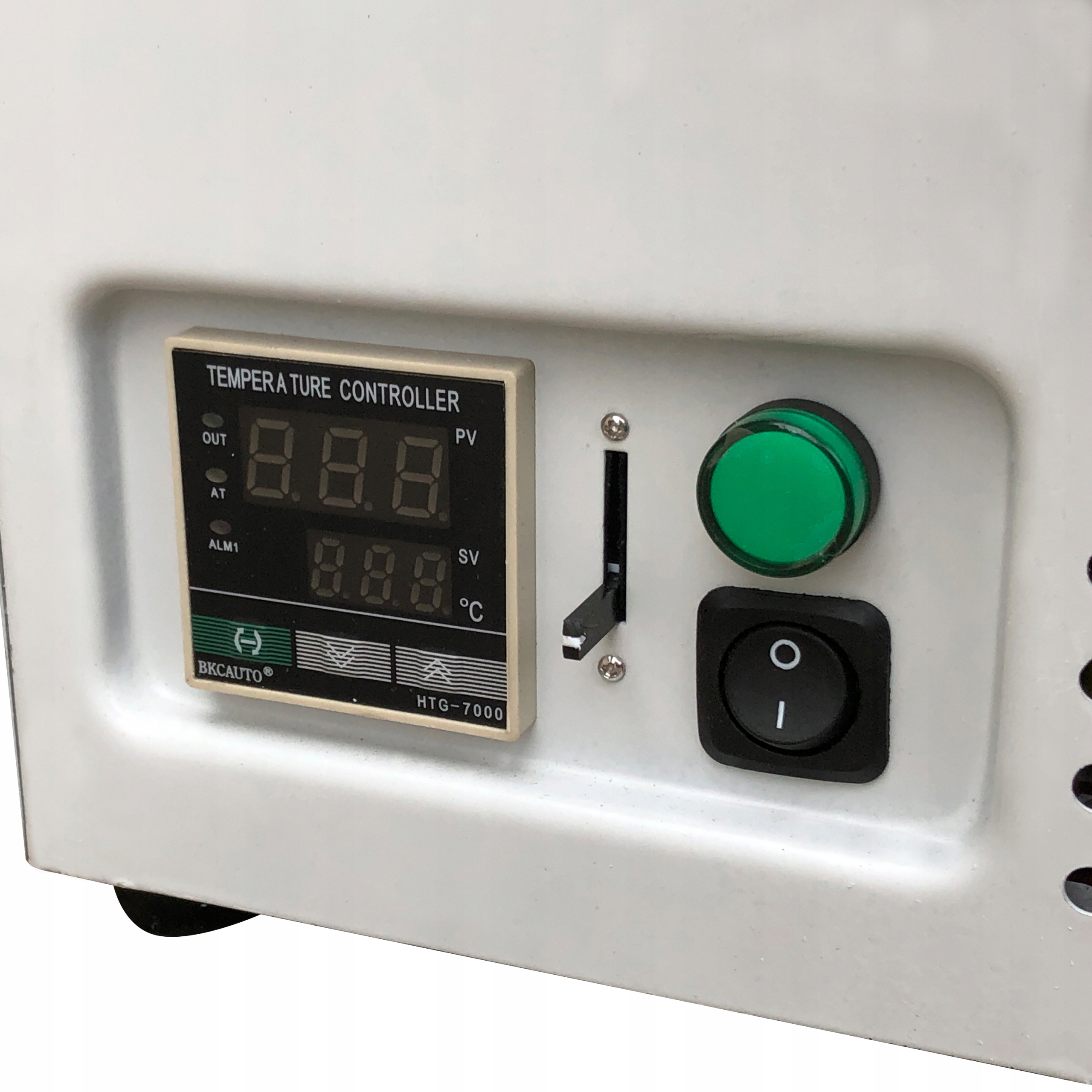 ✅ Панель управління оснащена дисплеєм, на якому відображається поточна температура клею. Крім того, поруч із перемикачем є повзунок швидкості подачі стрічки.