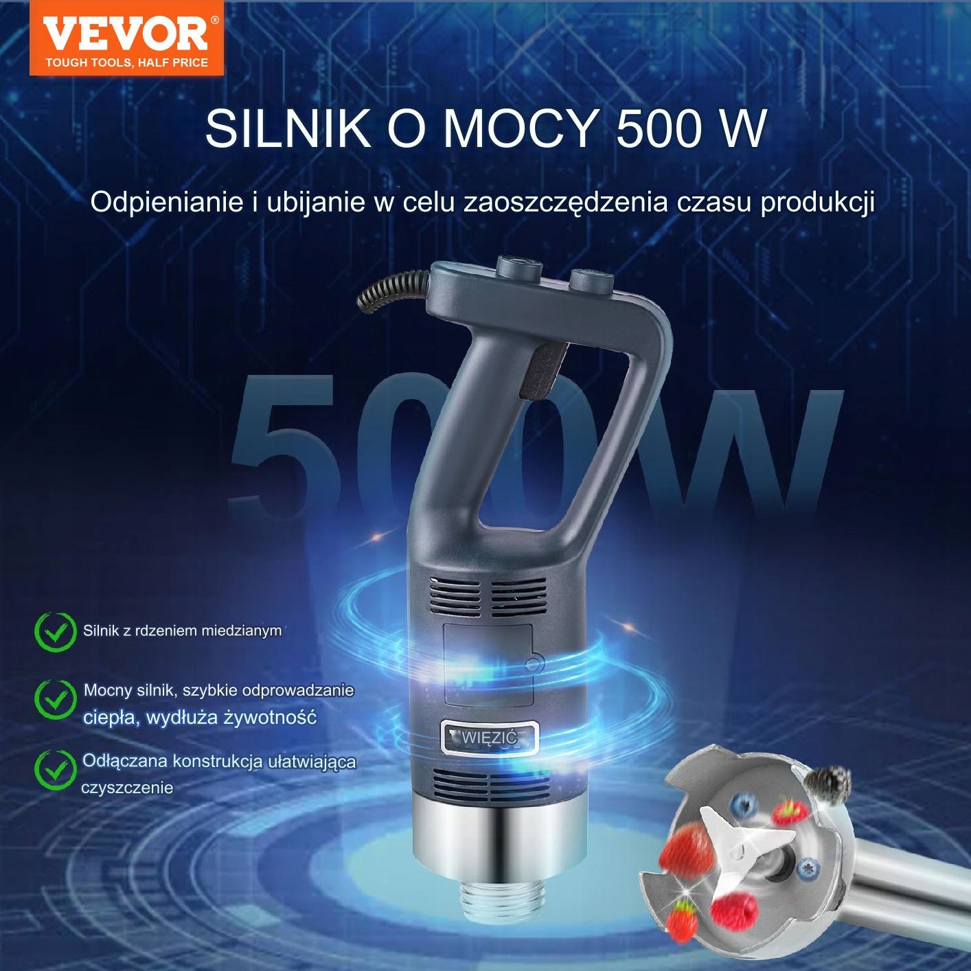Блендер занурення, оснащений двигуном 500 Вт, забезпечує швидке та ефективне змішування супів, соусів та інших рідких інгредієнтів. Ідеально підходить для професійних кухонь, де ефективність та точність. Потужний двигун гарантує плавну роботу навіть при більш тривалому використанні.