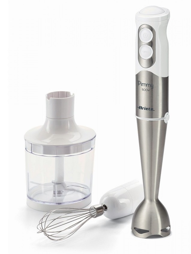 Ariete 500 Metal 3in1 — це зручний і багатофункціональний ручний блендер, який поєднує в собі функції 3-х пристроїв. Завдяки потужності 500 Вт і аксесуарам, що входять в набір, Pimmy ідеально підійде на вашій кухні, виконуючи функції блендера, електричного вінчика і кухонного комбайна. Це дозволяє швидко та зручно нарізати, змішувати та збивати будь-які інгредієнти.