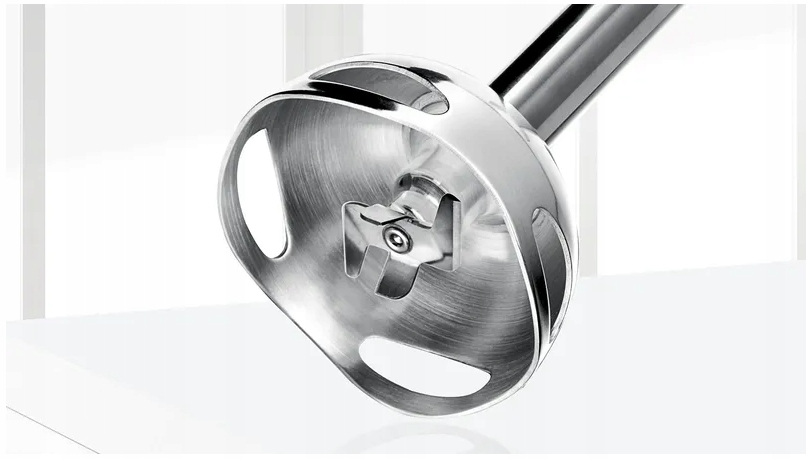 Ніж із чотирма лезами QuattroBlade забезпечує відмінні результати роботи та запобігає розбризкуванню змішаних страв. Ергономічний і простий в експлуатації: легкий корпус з м'якою ручкою забезпечує зручне і безпечне розташування руки під час роботи. Ємність для змішування та відмірювання інгредієнтів. Завдяки кришці ємність з її вмістом легко зберігати в холодильнику. Запатентована кнопка розблокування аксесуара. Це дозволяє легко від'єднати наконечники від корпусу пристрою.