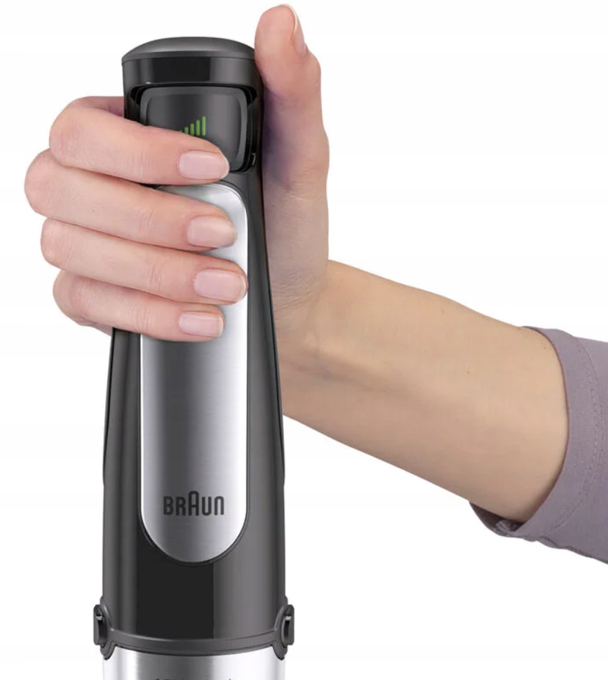 Новий ручний блендер Braun MultiQuick 7 розроблено для швидкого та легкого приготування здорової їжі для родини та друзів. Оснащений першою в світі технологією ACTIVEBlade. Інноваційна ніжка з рухомими лезами забезпечує в 2,5 рази більшу активну зону змішування* і значно полегшує приготування їжі. Нова технологія Braun Easy SmartSpeed дає можливість контролювати швидкість одним дотиком. Просто натисніть кнопку, щоб інтуїтивно відрегулювати потужність, не перериваючи роботу. *Порівняно з ручними блендерами Braun без технології ACTIVEBlade.