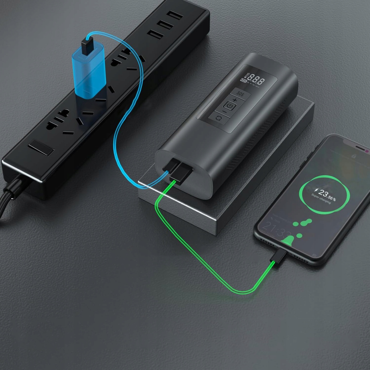 - 🔋 Цей портативний повітряний компресор можна використовувати як зарядний пристрій: він має USB-порт, який може надати вам функцію акумулятора зарядити смартфон в екстреній ситуації. У комплект також входить міцна сумка для зберігання, яка дозволяє зручно зберігати і транспортувати компресор. Чудовий вибір подарунків для друзів і родини. Ваш найкращий друг у дорозі.