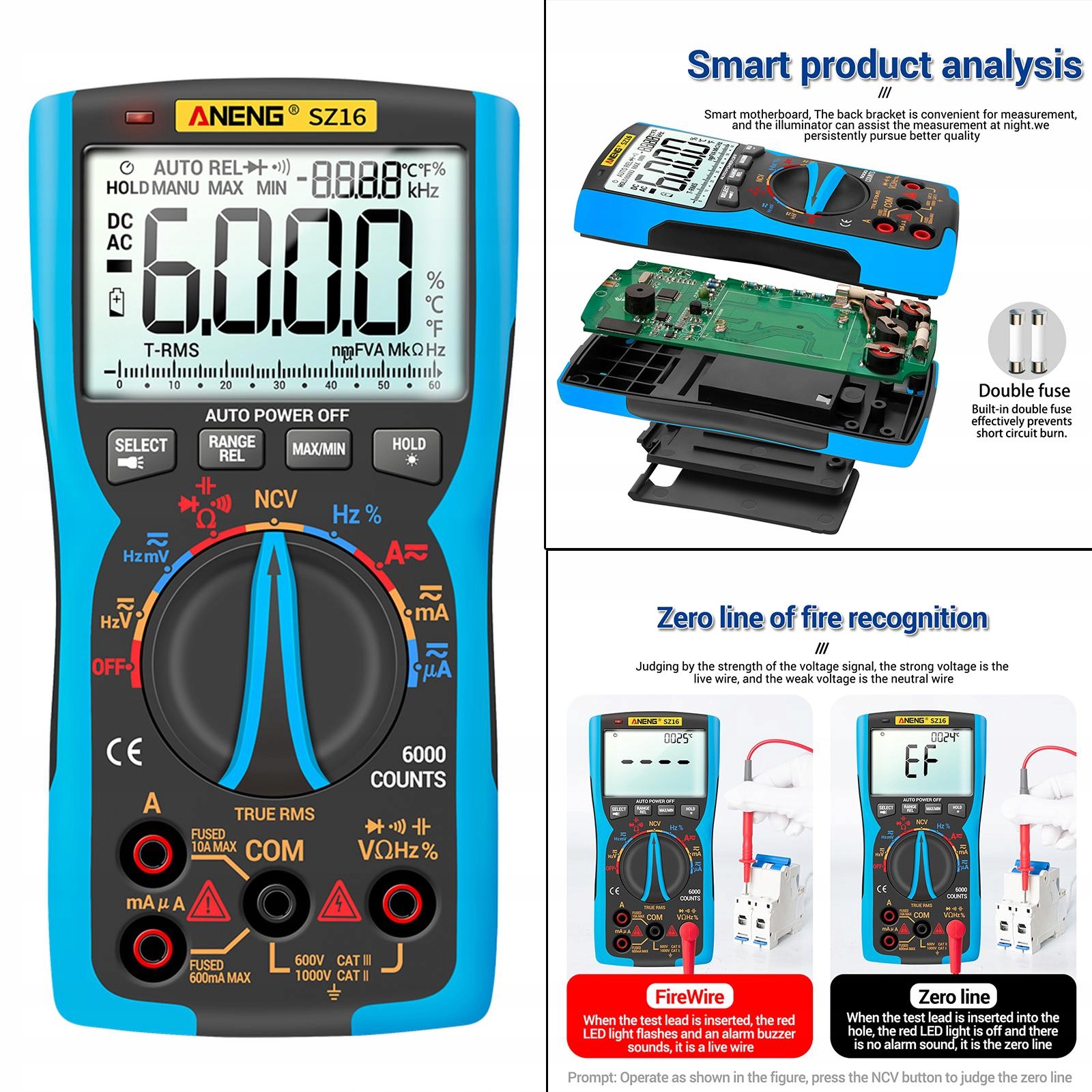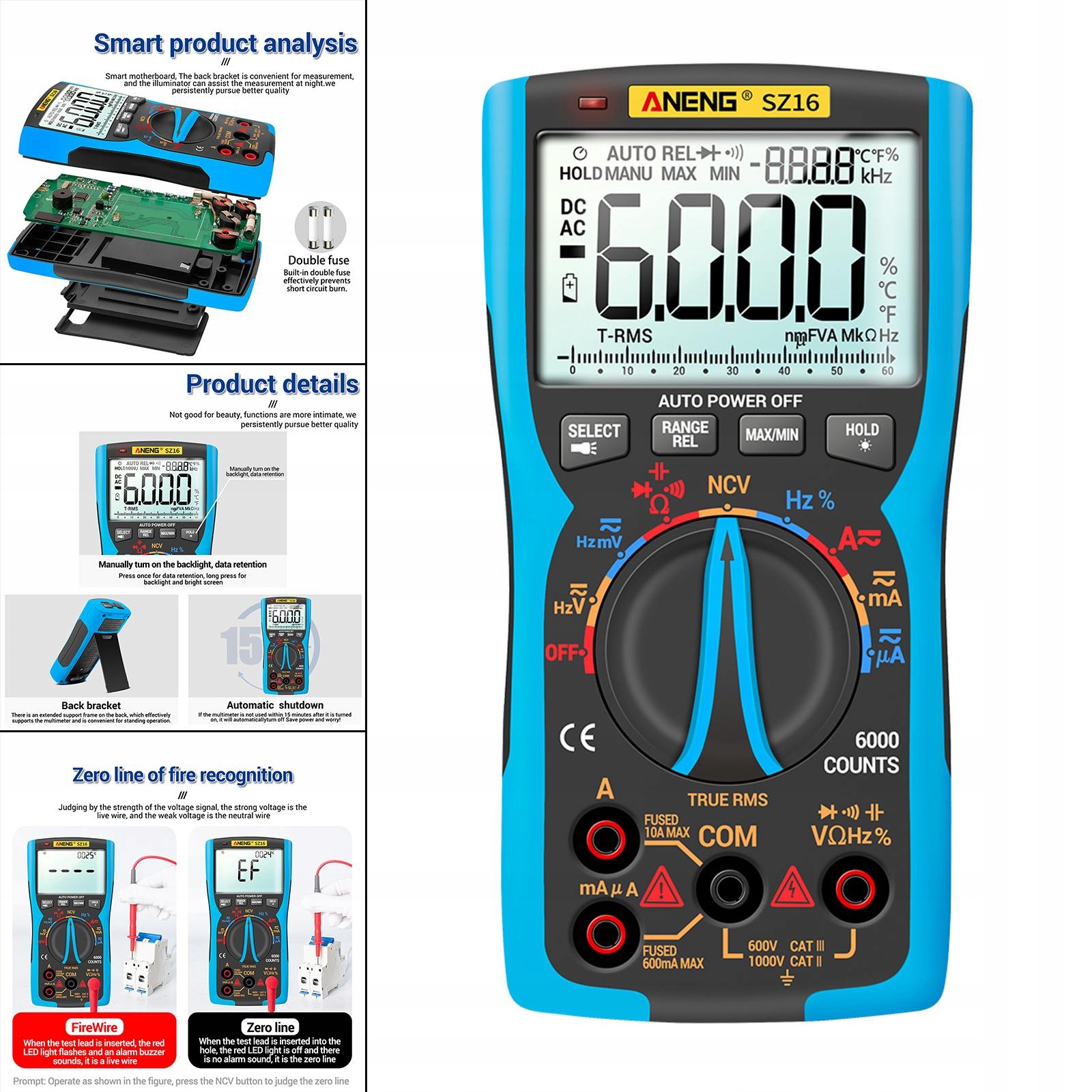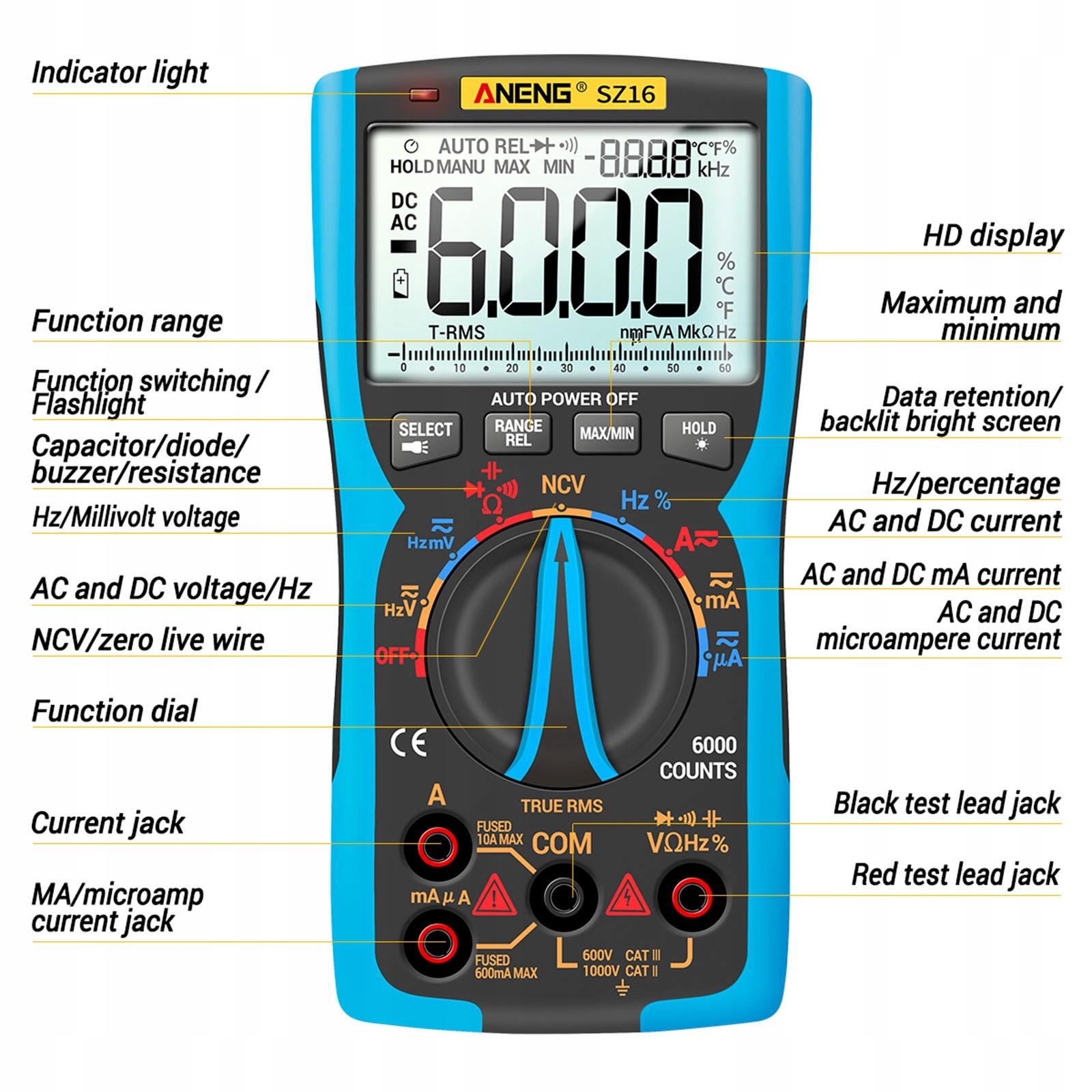Ручний цифровий тестер РК-дисплей 6000 відліків, точні вимірювання, синій SZ16