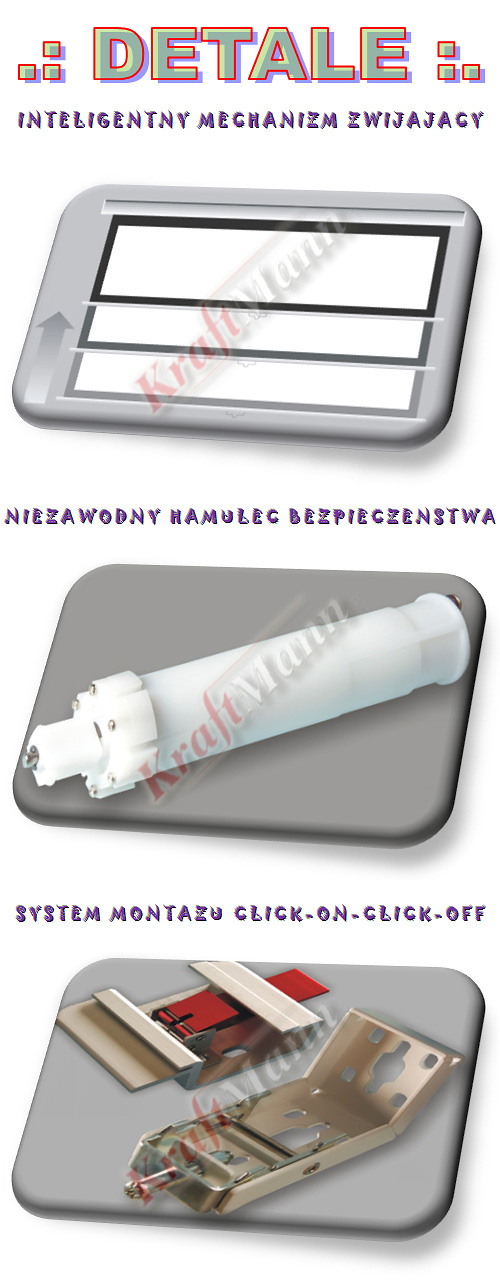 Додаткові опції:: чорна рамка будь-якої товщини, чорний верхній накатний пояс будь-якої ширини, касета пофарбована в будь-який колір RAL, овальний або квадратний профіль касети, механізм повільного повернення, ... p>