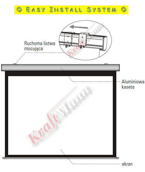 Ручний екран, серія FantasyScreen, настінно-стельовий касетний, також для індивідуальної установки в підвісну стелю або нішу