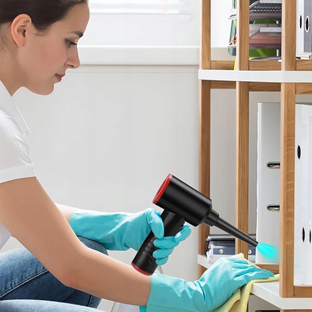 Для глибокого очищення дрібного пилу, наприклад комп’ютерного, клавіатури, дивани, машини. У порівнянні з балончиками зі стисненим повітрям, бездротова повітродувка не виробляє хімікатів, рідин або льоду під час очищення. Захищає вашу електроніку від рідин. Практичний для використання вдома, в офісі чи в автомобілі.