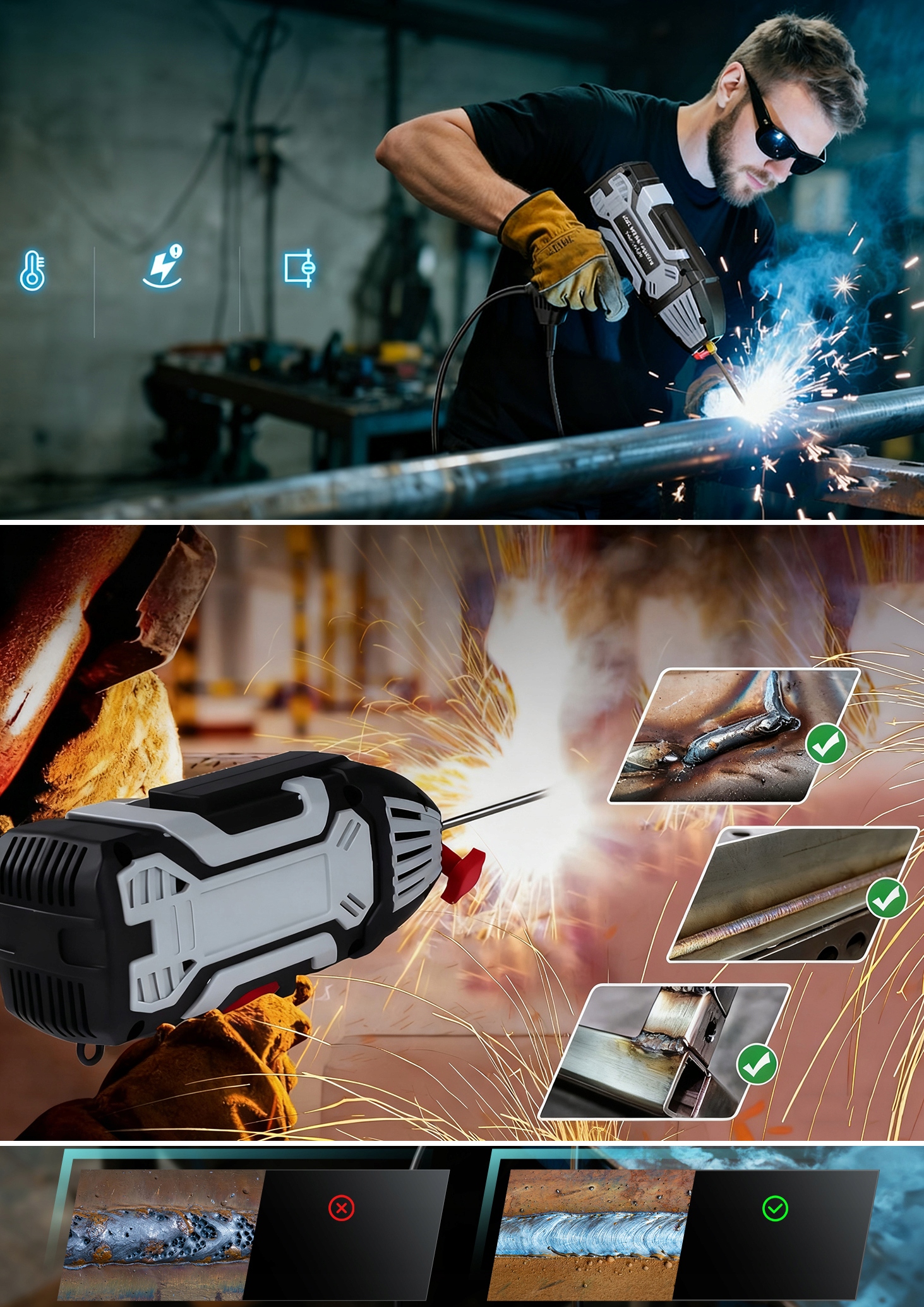 ★ Більше ніяких брудних зварних швів. Цей ручний зварювальний апарат із сучасною інверторною технологією гарантує чисті зварні шви без задирок під час кожного використання.