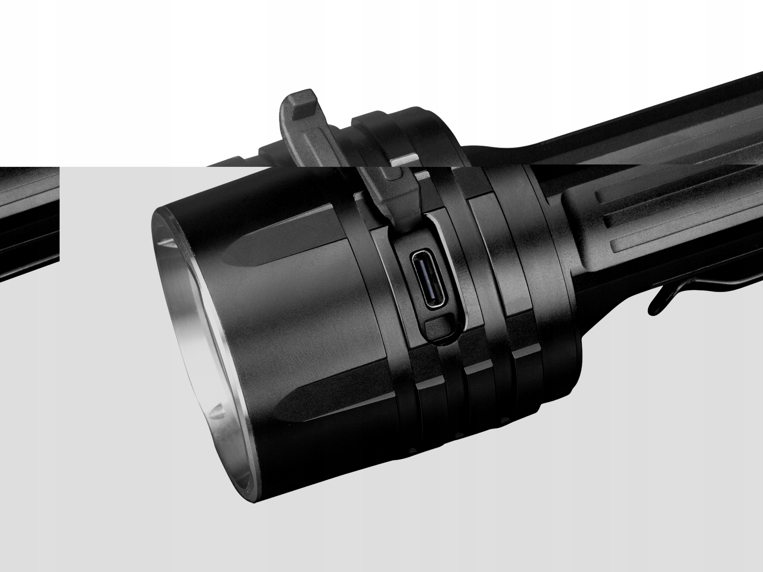 Fenix LR35R — це компактний прожектор, що випромінює світловий промінь 10 000 люмен з радіусом дії 500 м, оснащений 6 Випромінювачі Luminus SST40, зарядний порт USB-C, індикатор рівня заряду та 2 батареї 21700 ємністю 4000 мАг.