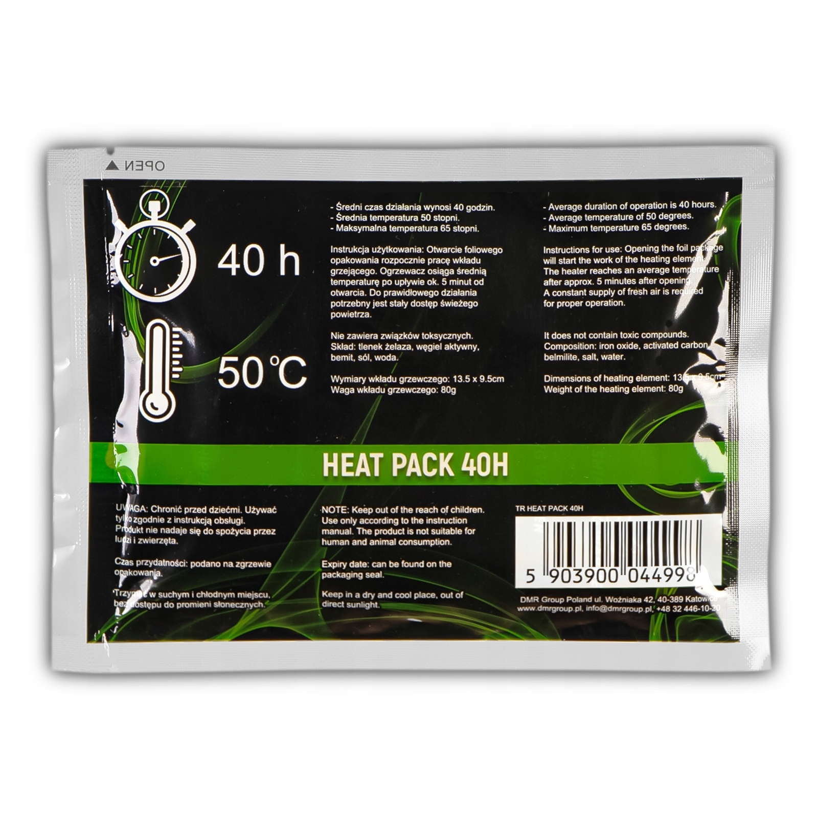 Після відкриття нагрівається до 50 градусів за Цельсієм і зберігає цю температуру протягом 40 годин. Він простий у використанні, а нетоксичний вкладиш не становить загрози для людей і тварин, навіть якщо продукт диспергований.