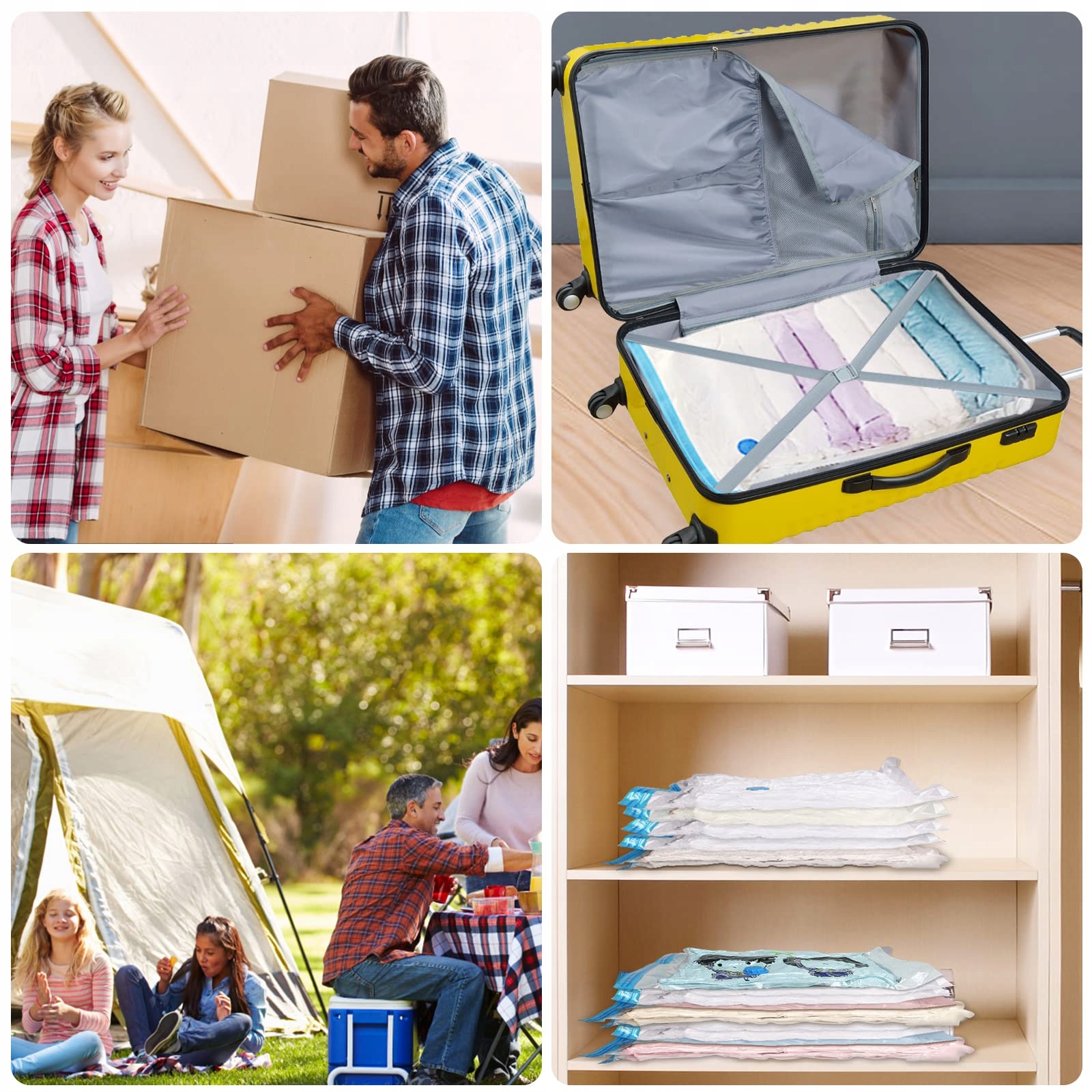 ✅✅Економія місця: набір включає 3 штуки вакуумних пакетів (60 x 80 см). Якщо ви подорожуєте і хочете мати максимум простору без великої кількості багажу, ці вакуумні сумки для зберігання ідеальні! Якщо вам потрібно знову упакувати багаж для зворотньої подорожі, просто скористайтеся ручним насосом, і ваші сумки будуть знову запечатані та запаковані під вакуумом. Ідеально підходить для валіз, шаф і ящиків.