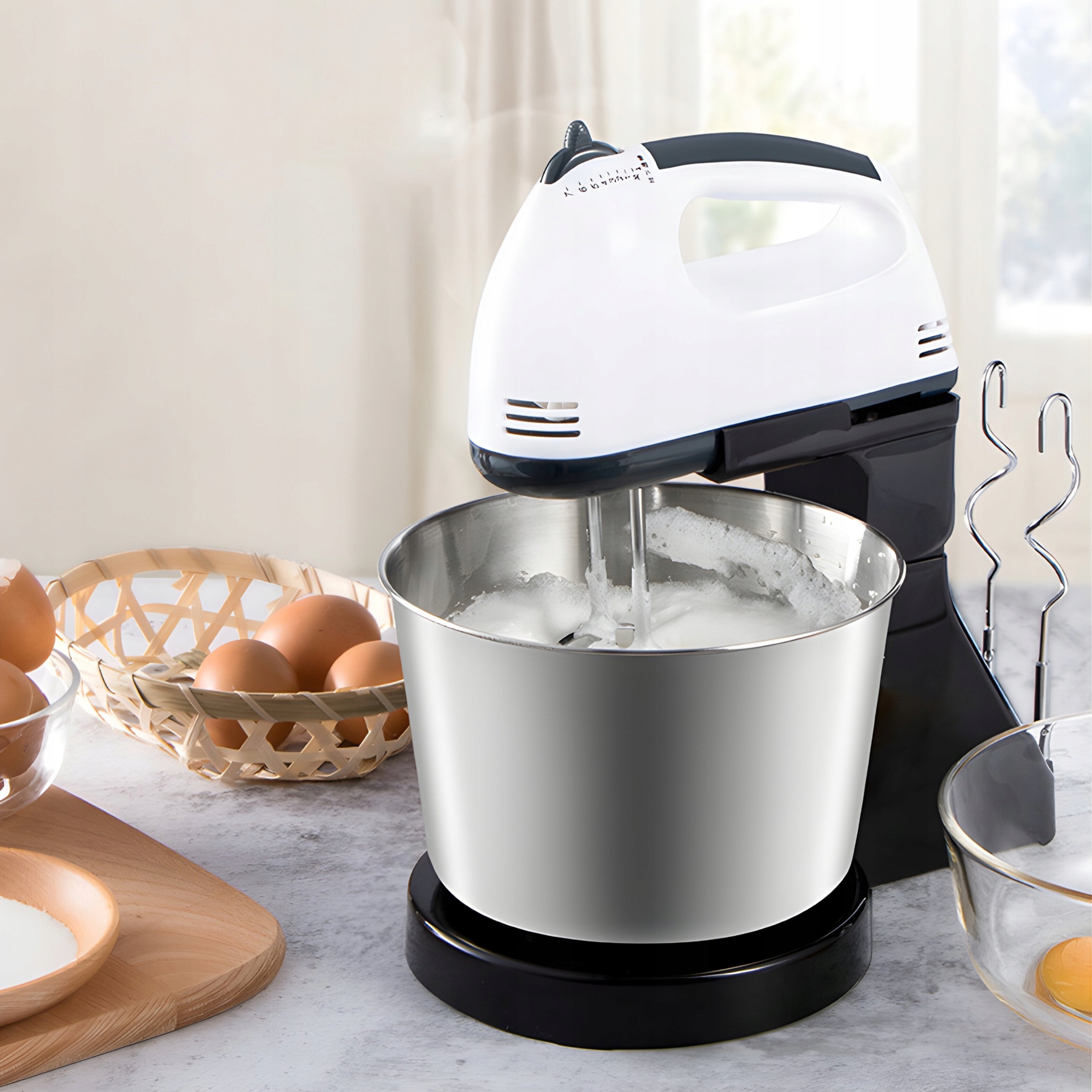 Електричний міксер - це пристрій не тільки функціональний, але й зручний у використанні. Його ключовим елементом є основа з чашею, що робить його безцінним інструментом на кухні. Завдяки цьому ручний міксер може працювати без необхідності тримати його вручну. Це велика зручність, особливо під час приготування тістечок, кремів та інших інгредієнтів, які вимагають більш тривалого змішування.