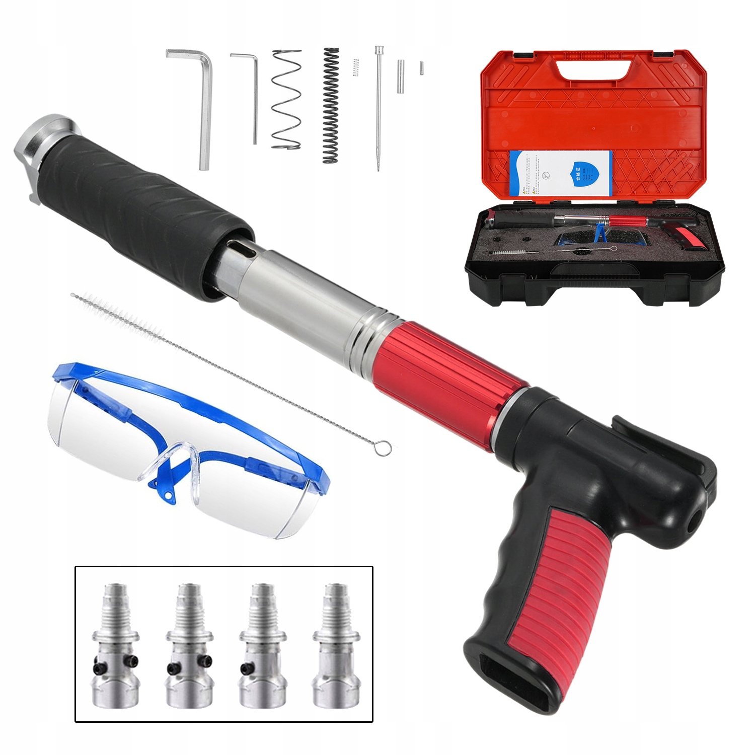 ✅Різні аксесуари: b>Оснащений різними аксесуарами, такими як захисні окуляри, рукавички, затички для вух, шестигранні ключі, пружини, шпильки, цвяхи тощо.