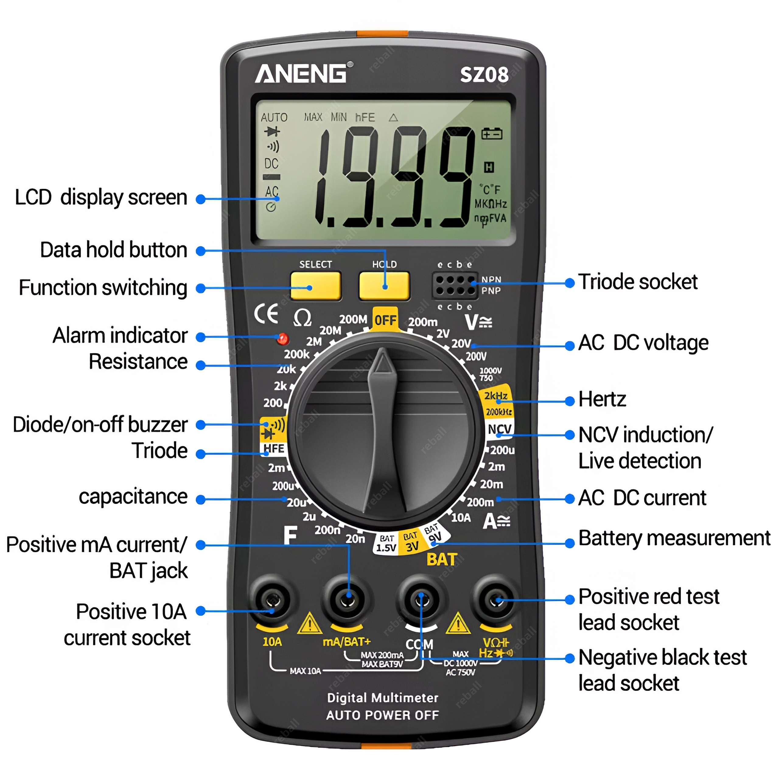ЦИФРОВИЙ УНІВЕРСАЛЬНИЙ МУЛЬТИМЕТР ANENG SZ08 METER