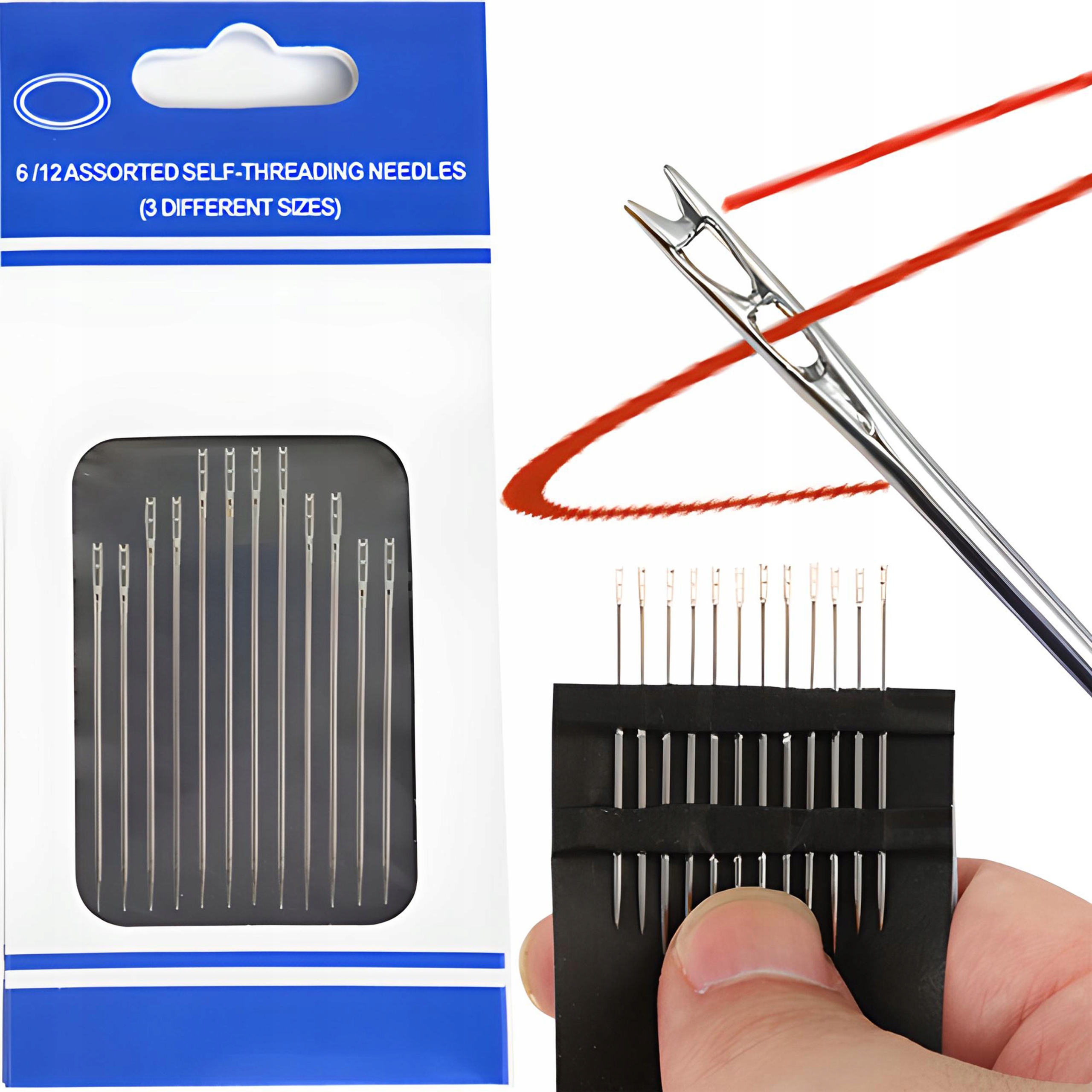 НАБІР ДЛЯ ШВИЦЯ З 12 РУЧНИМИ ГОЛКАМИ З САМОНИЗКОВОЮ НИТКОЮ