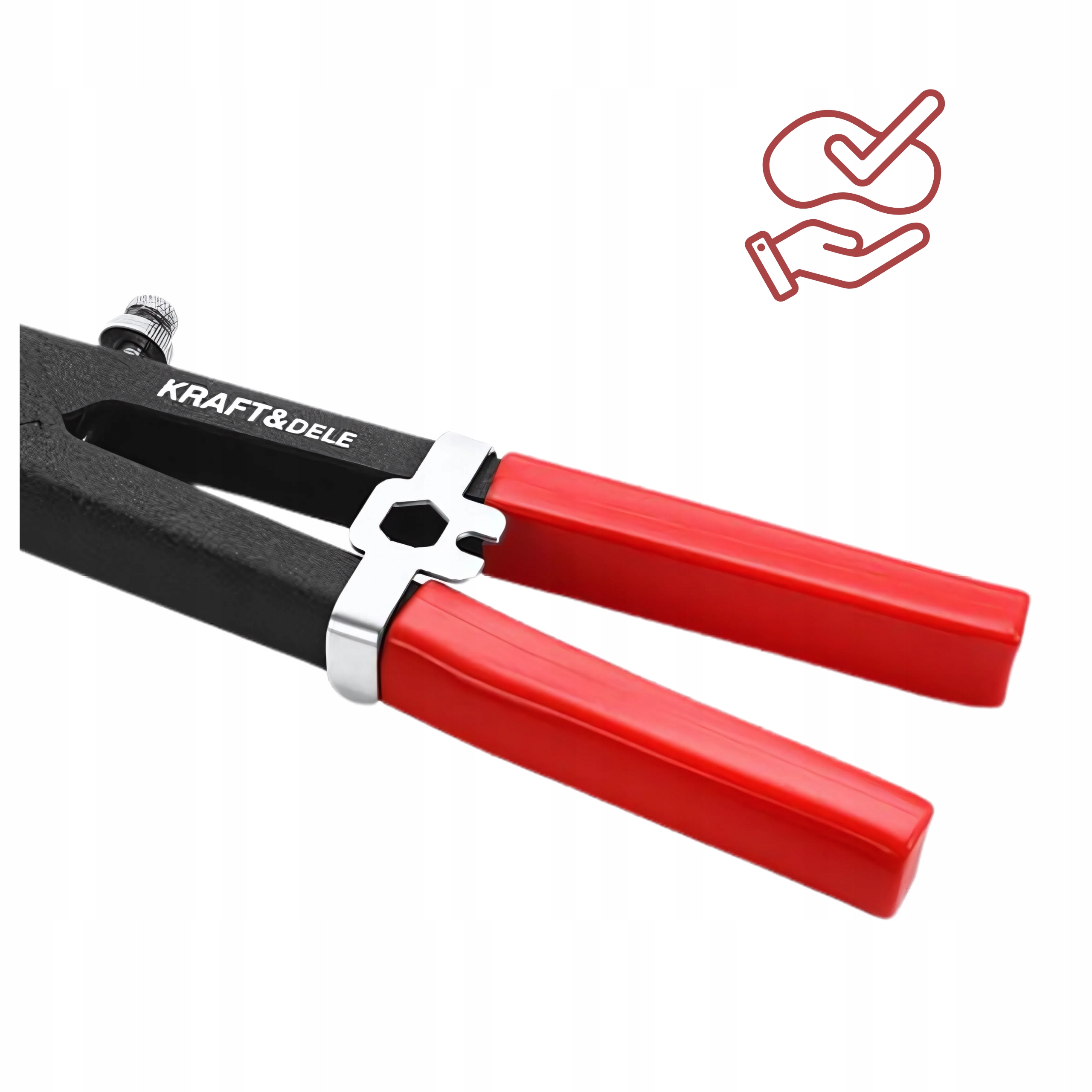 Заклепальник має ергономічні неслизькі ручки, що підвищує комфорт і безпеку під час роботи. Завдяки довгим плечам і збалансованій конструкції можна ефективно встановити заклепкові гайки без зайвих зусиль.