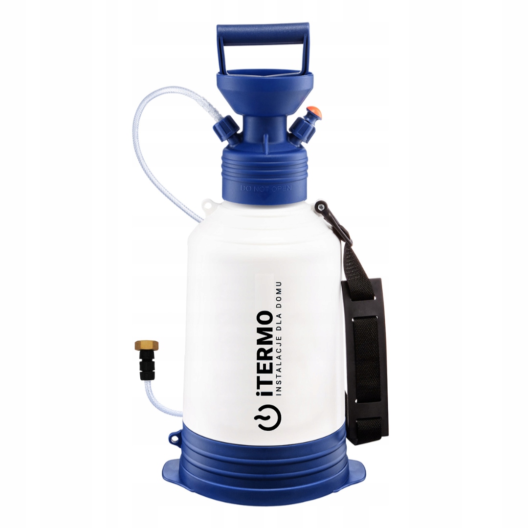 Ручний насос використовується для заповнення системи центрального опалення. і сонячні. Поршневий насос створює в баку надлишковий тиск до 3,4 бар, що дозволяє перекачувати рідину в установку. Напірний бак, оснащений оглядовою шкалою з вимірюванням у літрах і галах, що дозволяє перевіряти кількість рідини, що наливається. Комфорт роботи покращується завдяки шлангу довжиною 4,5 метра, плечовому поясу та крильцям з плоскою базою, які забезпечують більшу стабілізацію під час пресування. Сітчастий фільтр дозволяє фільтрувати рідину, що заливається в насос, а запобіжний клапан захищає від надмірного тиску. До насоса додається інструкція з експлуатації польською, англійською, німецькою та російською мовами.