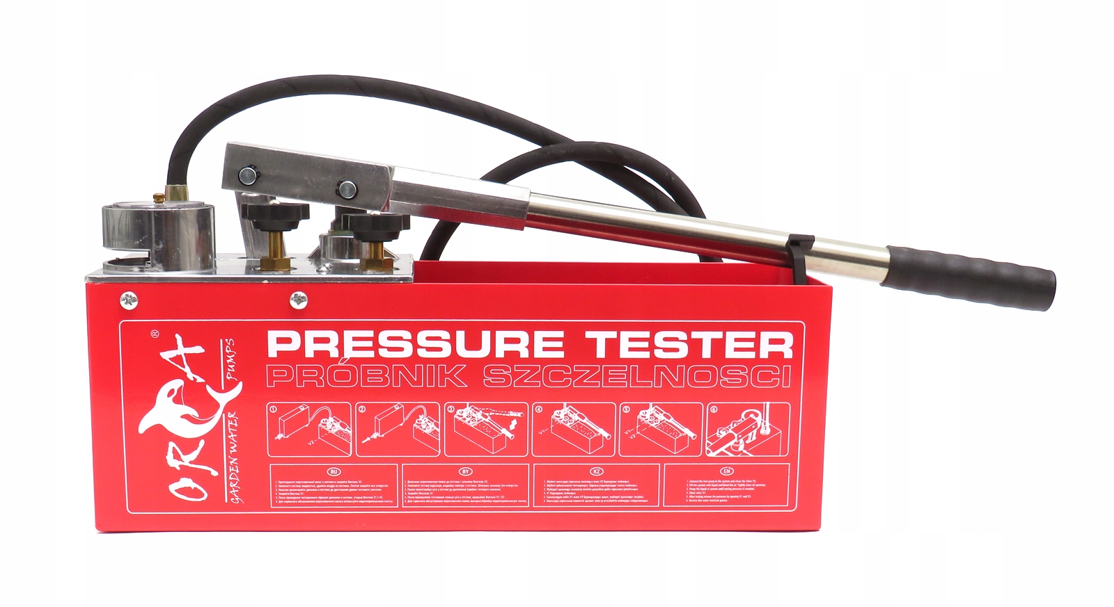 Ручний насос використовується для точного та швидкого проведення випробувань тиском, випробувань на герметичність трубопроводів або резервуарів у санітарно-технічних та опалювальних установках, котлах і посудинах під тиском.