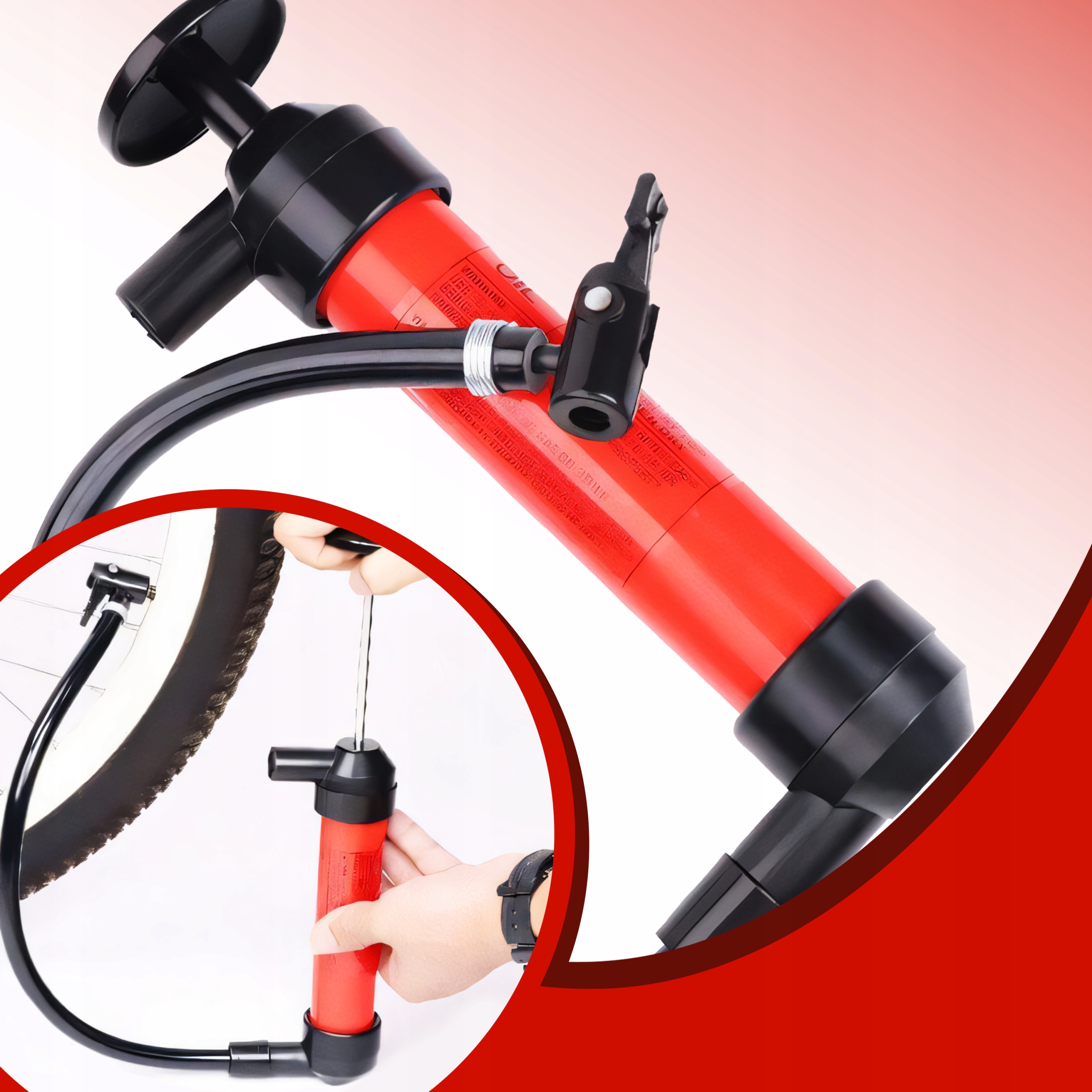 ⭐ ЧЕРВОНИЙ ШЛАНГ 100 СМ – Довгий і гнучкий шланг дозволяє зручно працювати з насосом у різних умовах.