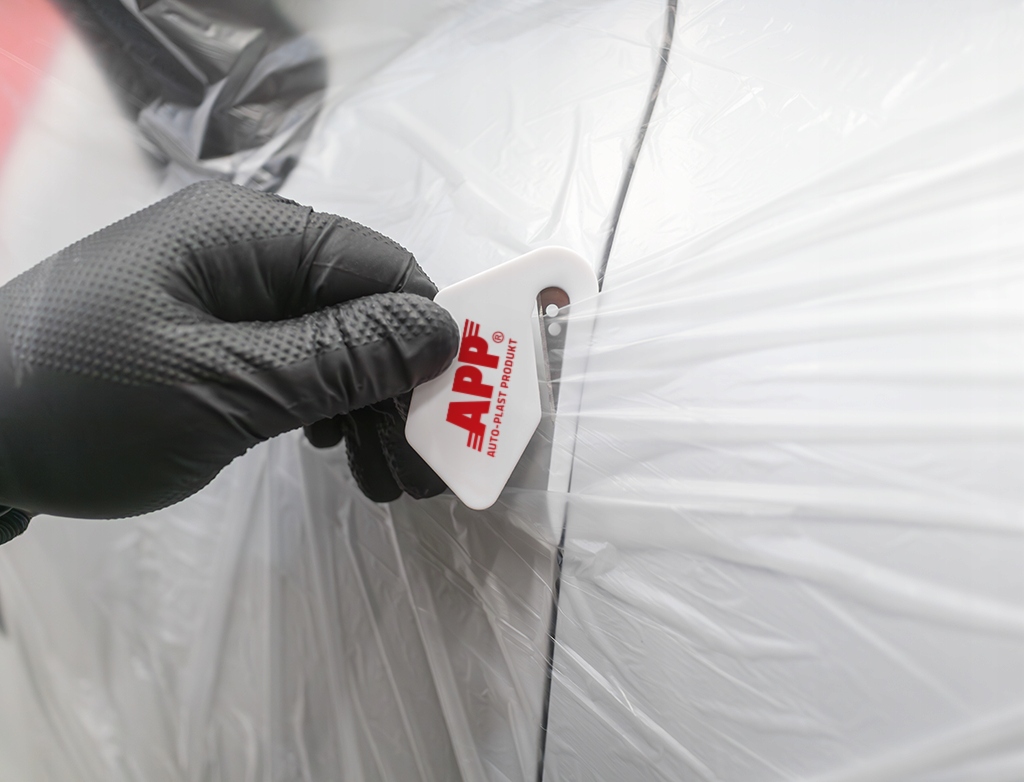 Ручний різець маскувальної фольги. Це дозволяє швидко вирізати необхідну довжину фольги та точне різання непотрібного фрагмента кришки з поверхні елемента ремонту. Завдяки побудованому -в магніті різак можна прикріпити до сталевих елементів, наприклад підставка для фольги. Лезо різаків виготовлено із загартованої нержавіючої сталі 420J2.