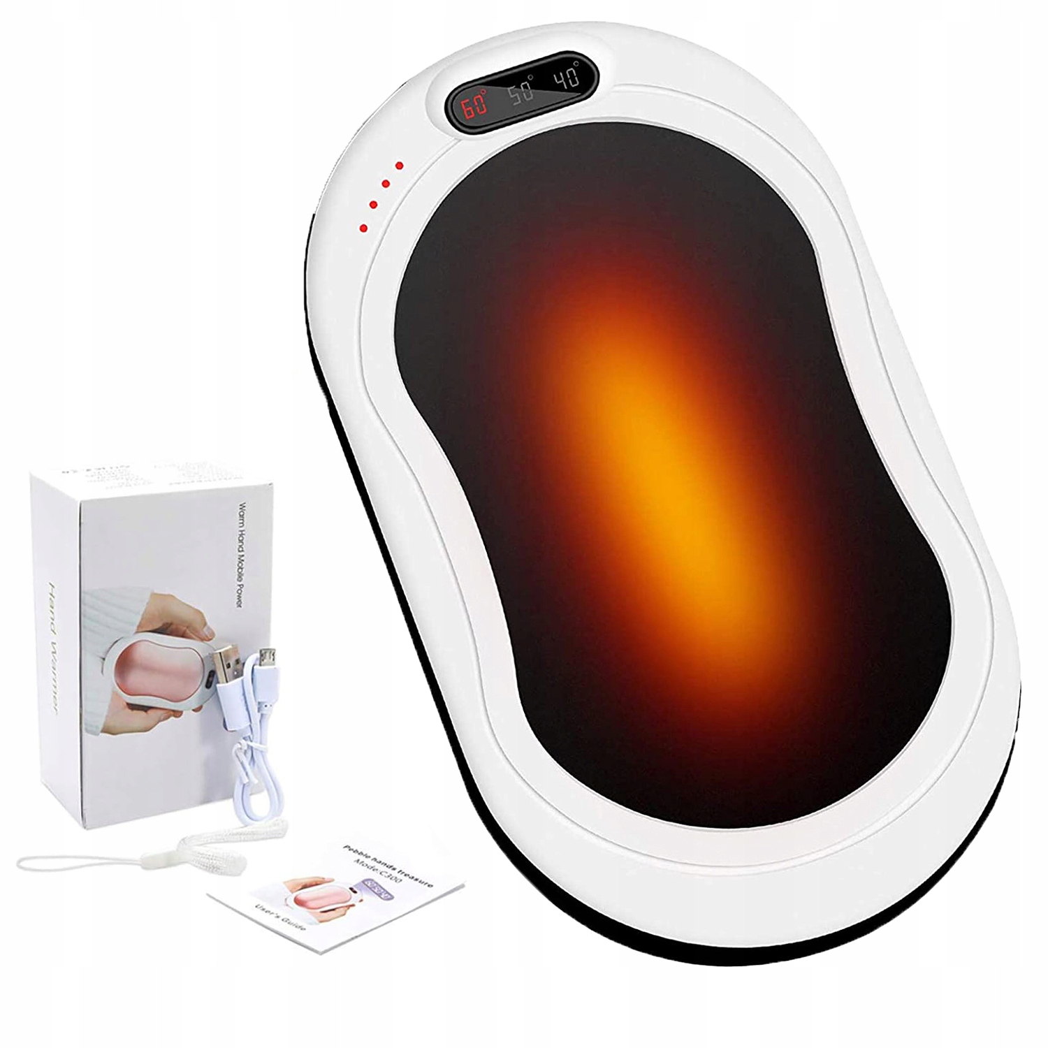 - 🔥Перезаряджувані та багаторазові — перестаньте витрачати гроші на одноразові грілки для рук! Цього року все більшої популярності набувають грілки для рук на батарейках. Його можна використовувати неодноразово. Якісний акумулятор можна заряджати сотні разів. Також може використовуватися як аварійне джерело живлення для заряджання мобільних телефонів.