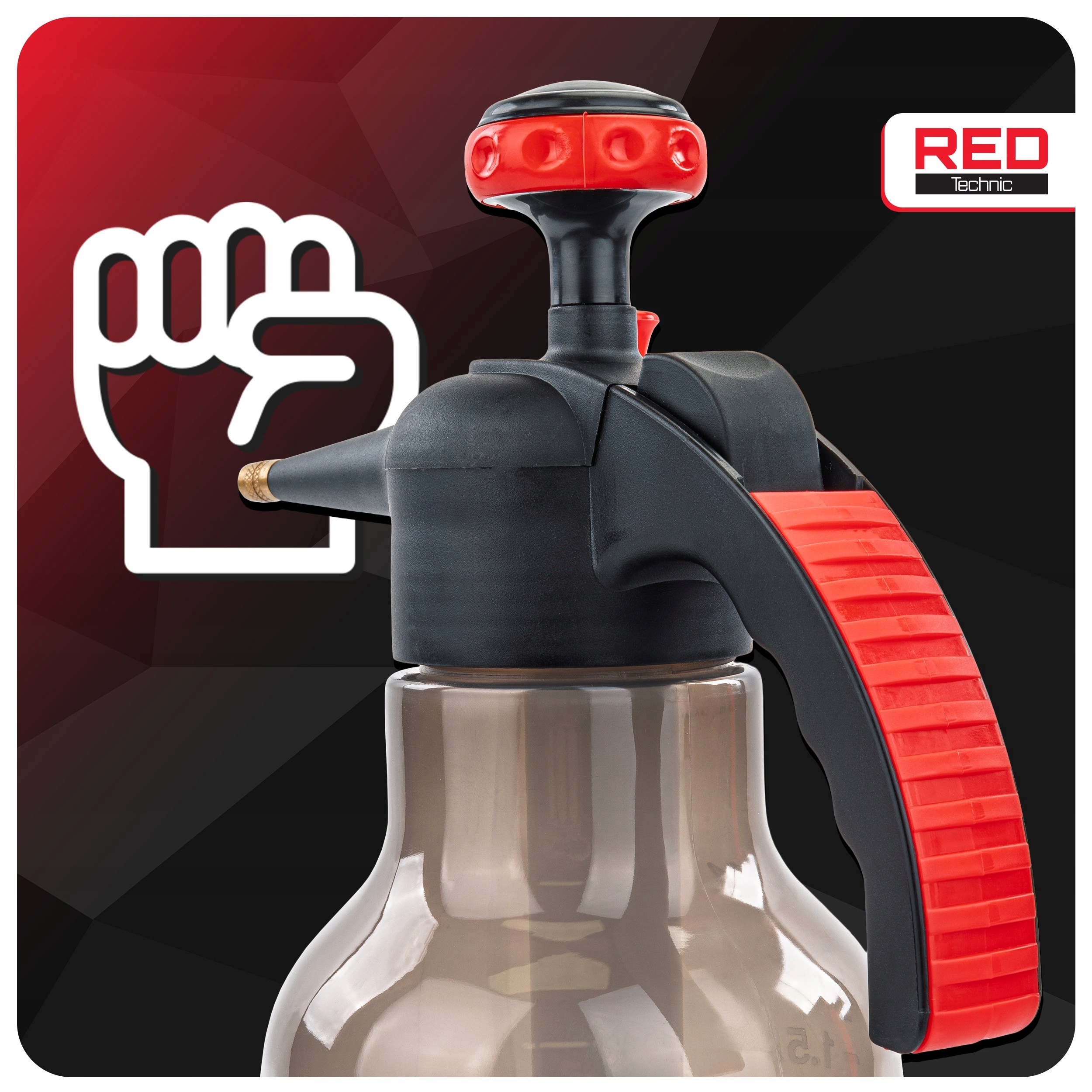 Ручний обприскувач RED Technic 2L — це міцний і стильний пристрій із прозорим резервуаром, ергономічною ручкою та регульованою насадкою для розпилення або струменя. Оснащений ручним насосом, запобіжним клапаном, фіксатором спускового гачка та 3 змінними насадками в комплекті. Ідеально підходить для рослин, садів, балконів і дезінфекції - легкий, зручний і простий у прибиранні.