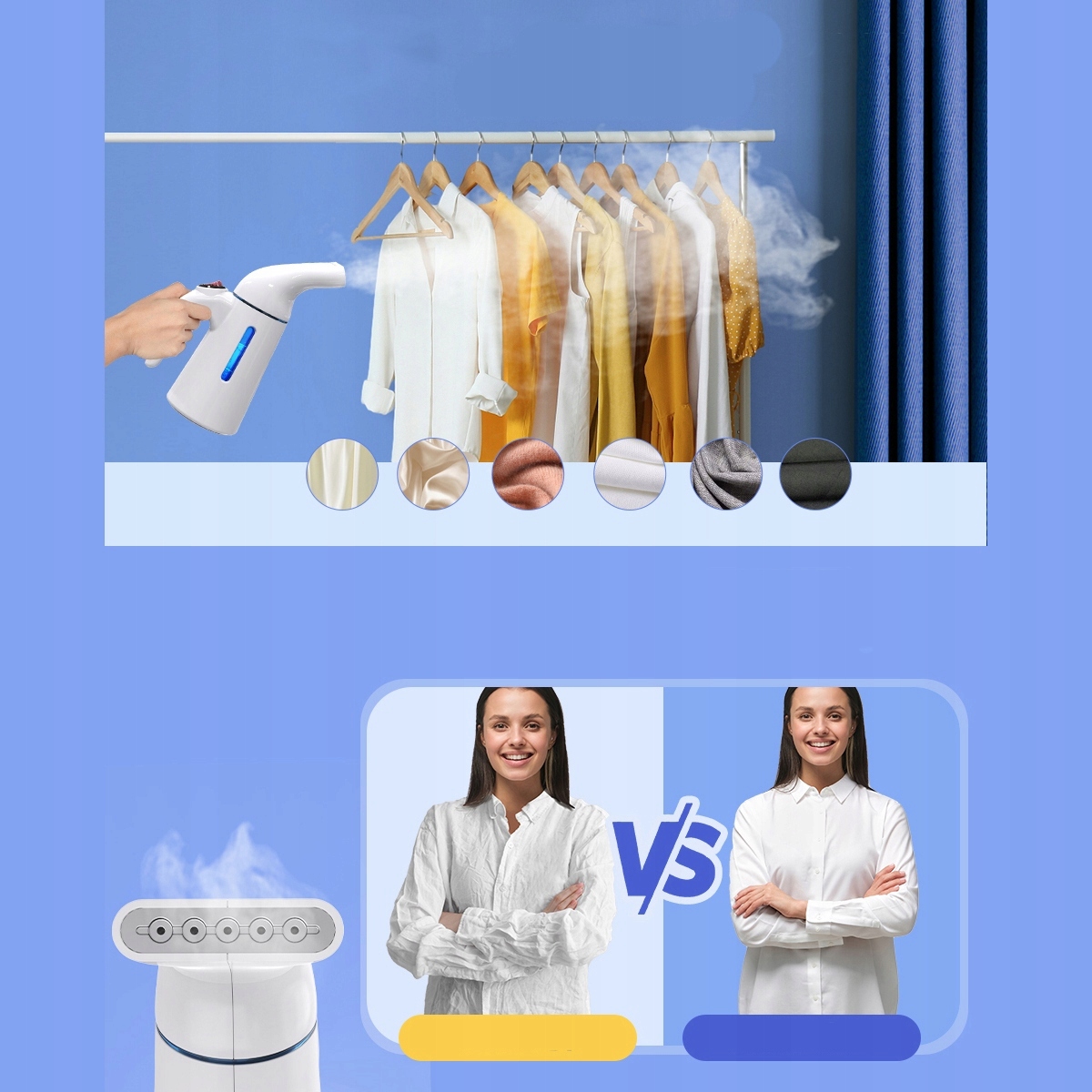 - до всіх тканин: багатофункціональний пароплав з чотирма функціями: прасування, зволоження, видалення складок та видалення пилу. Випарник одягу безпечний у використанні для делікатних тканин, м'якої бавовни, шовку, оксамиту, вовни, льону, поліестеру, нейлону, органічних тканин, килимів, штор, постільної білизни, подушок, диванів, дитячих іграшок тощо
