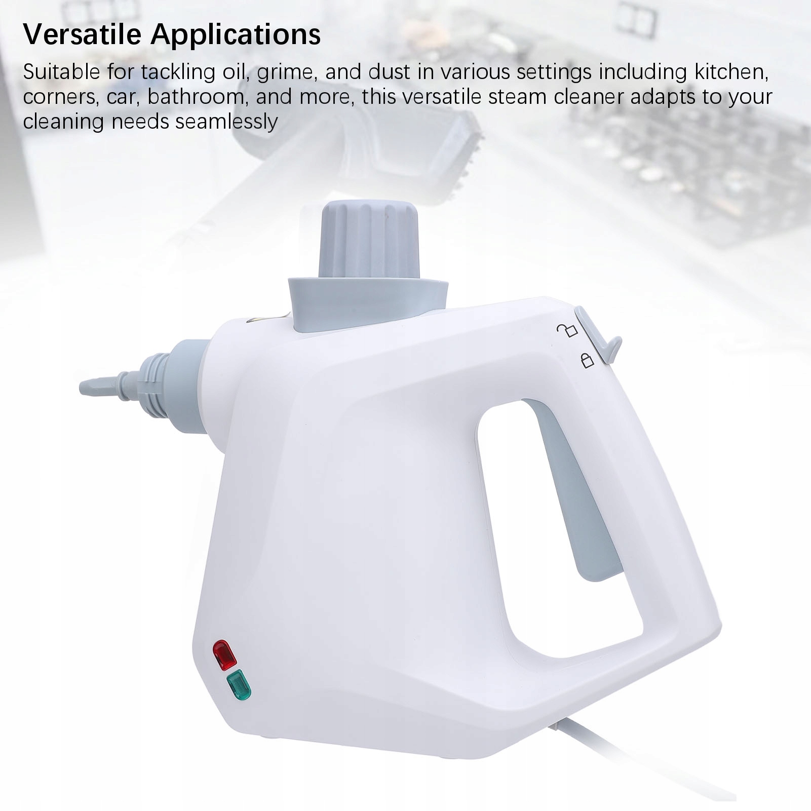 3. Універсальне використання: підходить для видалення масла, бруду та пилу в різних місцях, включаючи кухню, кути, машину, ванну тощо. Цей універсальний пароочисник легко адаптується до ваших потреб у прибиранні