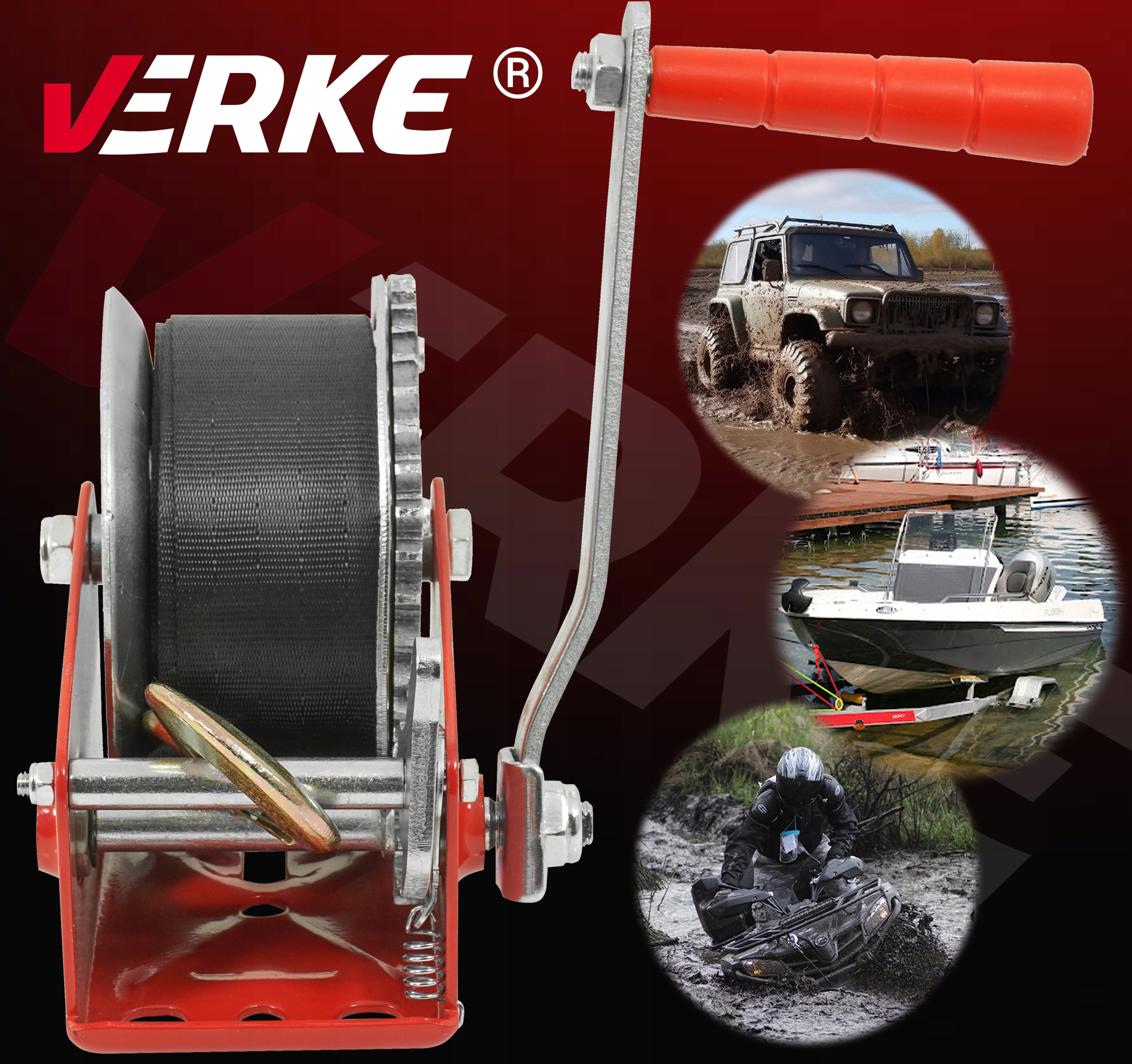 Це переможець із сильною сталевою конструкцією, призначеною для витягування невеликих човнів, водних скутерів, квадратів, невеликих транспортних засобів тощо. Він має легко доступний важіль зміни напрямку обертання: кочення/ розвиток. Лебка була виготовлена з високоякісних матеріалів з адекватною стійкою міцності та кастовим гачком із зворотною пружиною. Для управління пристроєм використовується ручний кривошип разом з механізмом храповика, ці властивості дозволяють витягувати та нижчі предмети. Він може бути використаний, серед інших, для розтягування сітки паркану, зв'язування, прикріплення та перетягування важких і великих предметів.
