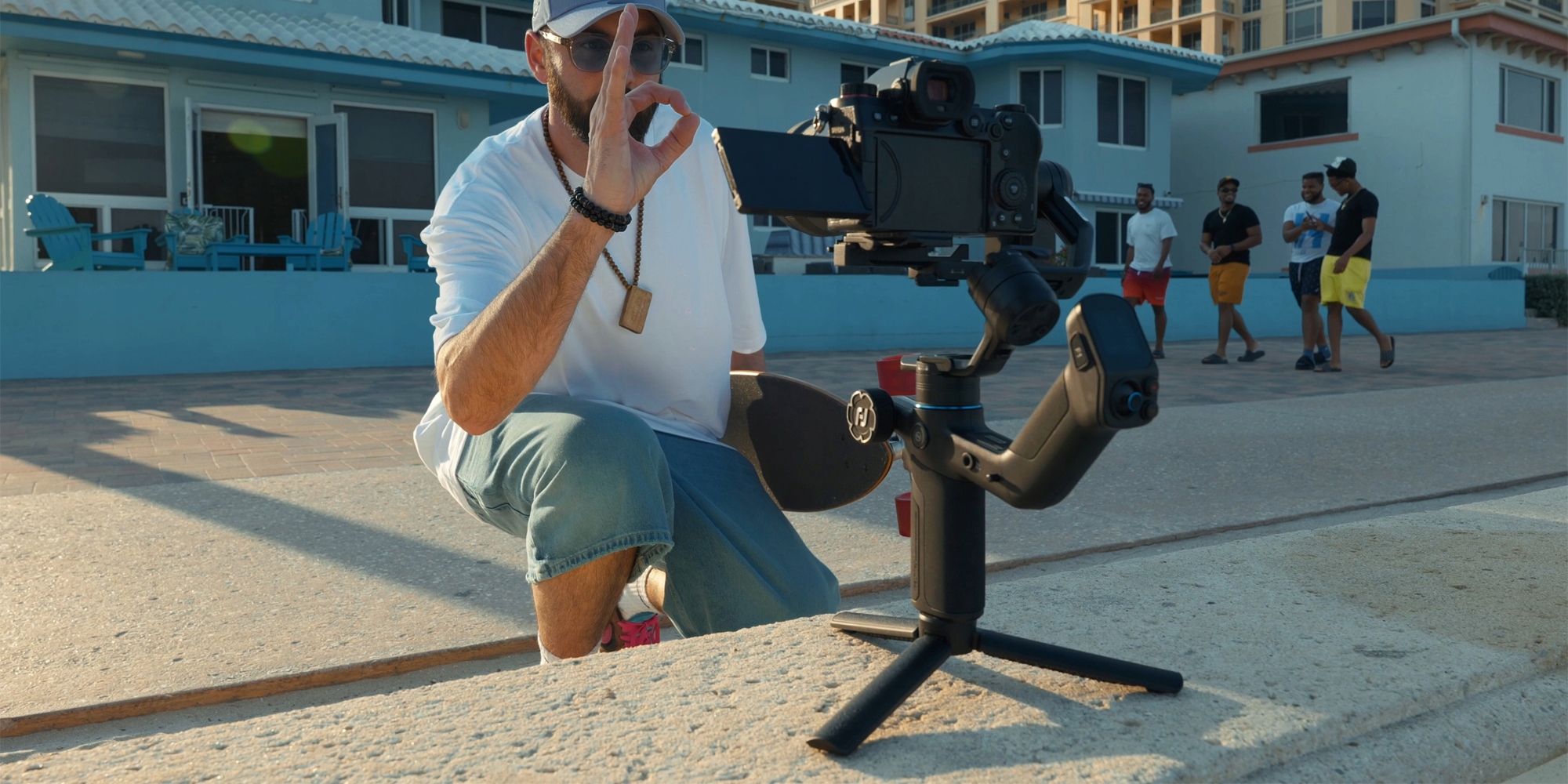 Керування жестами в підвісі FeiyuTech Scorp mini 3 Pro — це функція, яка робить зйомку ще більш інтуїтивно зрозумілою. Просто підніміть руку, щоб розпочати запис, зробіть жест «ОК», щоб увімкнути відстеження обличчя, або зупиніть його, якщо хочете змінити рамку. Система розпізнає п'ять різних жестів, що дозволяє зручно керувати, не торкаючись обладнання. Для відеоблогерів і режисерів, які працюють поодинці, це справжня підтримка. Підвіс FeiyuTech Scorp mini 3 Pro — це як невидимий оператор, який завжди буде з вами в ногу.