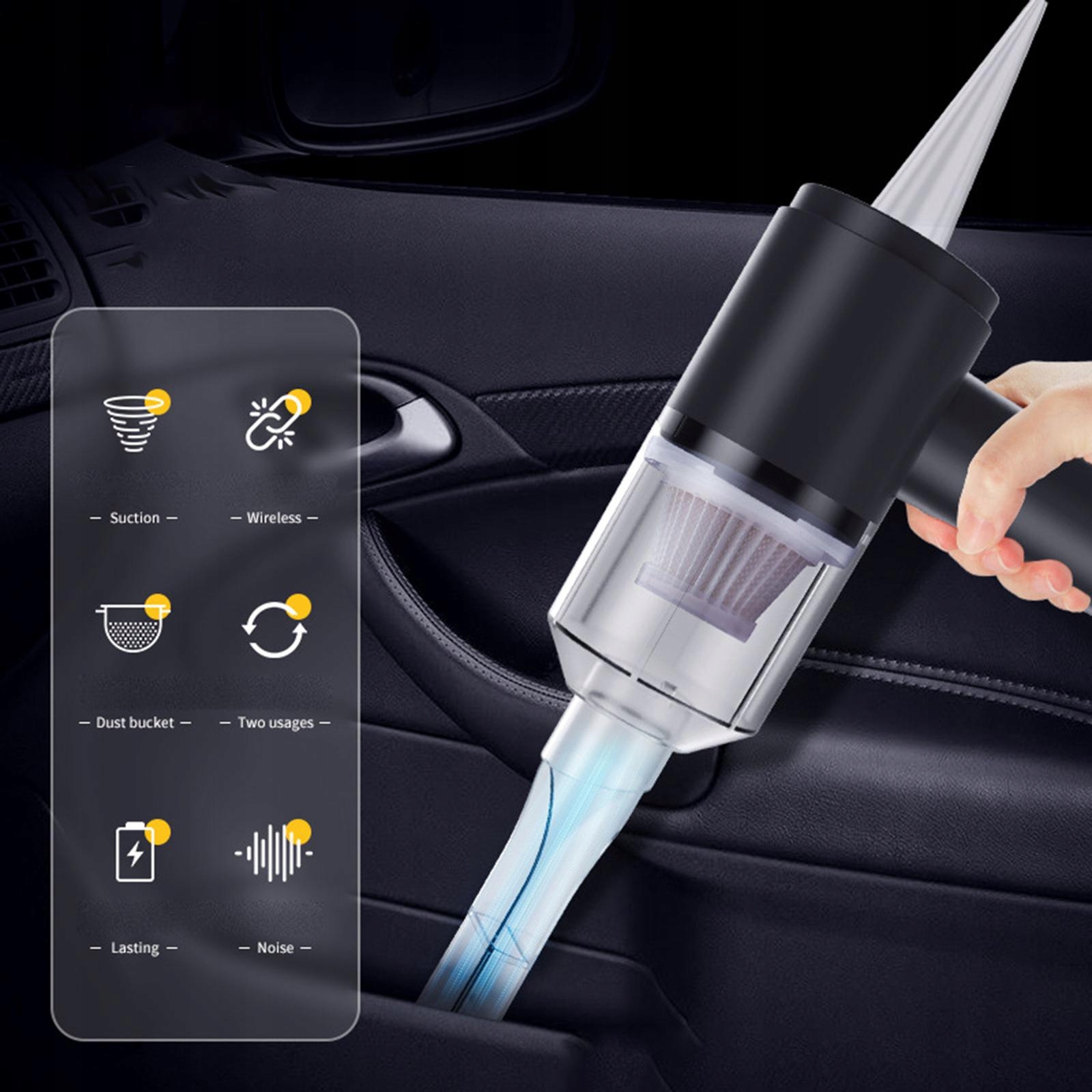 Всмоктування 2000 Па: з двигуном потужністю 15 Вт, до 22 000 об/хв, він може всмоктувати шерсть домашніх тварин, пил, сміття, паперові клаптики, що підходить для щоденного чищення. Чудовий вибір для чищення автомобіля та будинку.