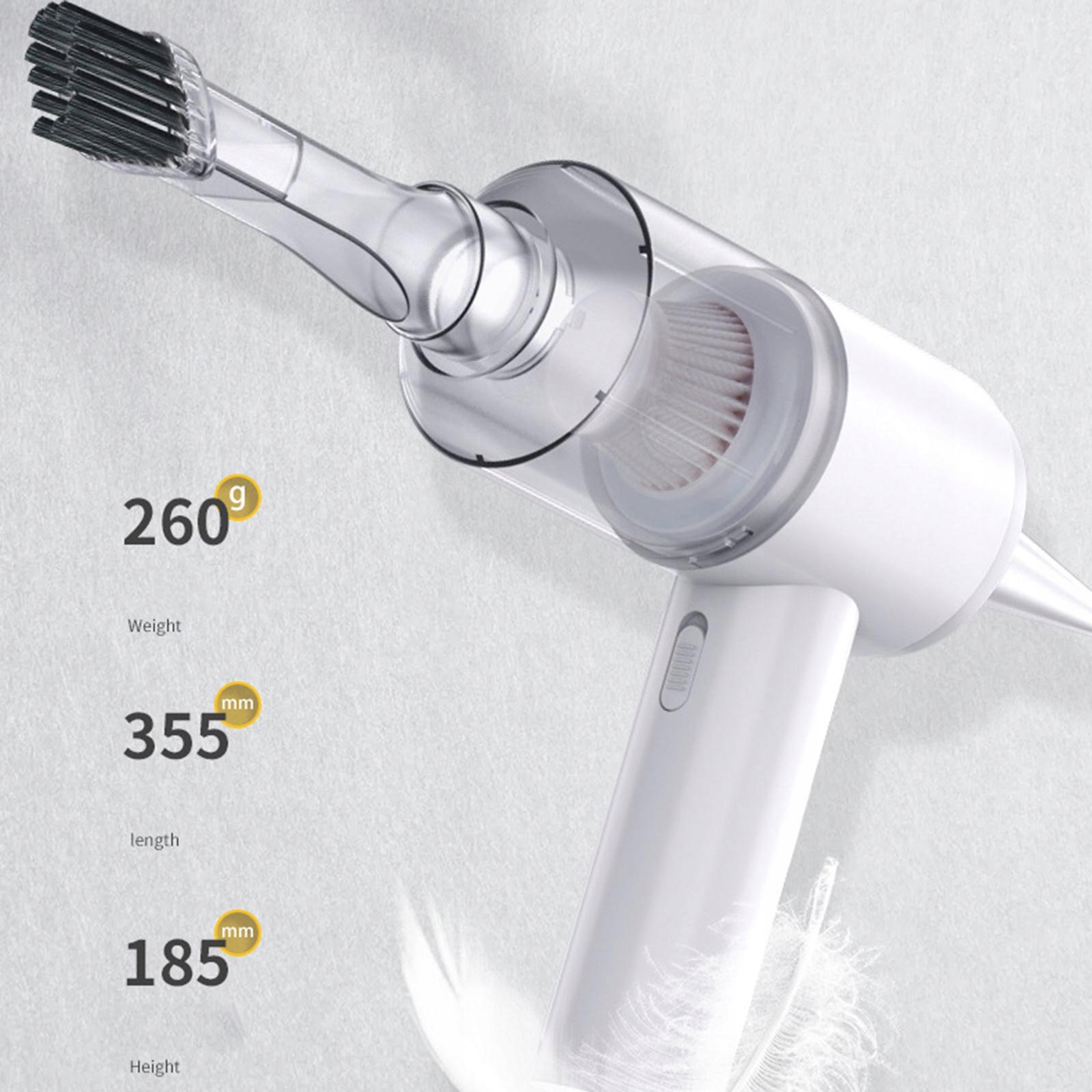 Застосування: гнучке видалення частинок пилу з диванів, кухонь, сходів, автомобілів, комп’ютерів, клавіатур, настільних комп’ютерів, домашніх тварин, ноутбуків та інших важкодоступних місць.
