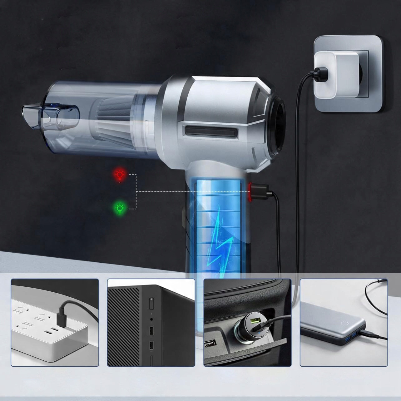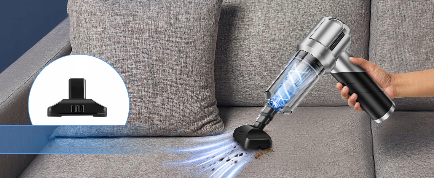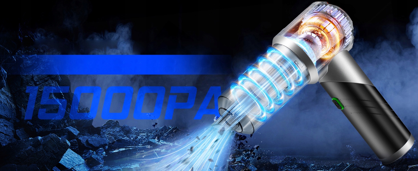 Сильне смоктання, ретельне очищення: пилосос має потужність всмоктування 15000 pa і оснащений високоефективним безлічковим двигуном. Він забезпечує сильну всмоктувальну потужність, яка видаляє пил і бруд з різних поверхонь, таких як килими, меблі, інтер’єр автомобілів тощо, що забезпечує свіже та чисте середовище вдома. (Щоб запустити пилосос, утримуйте кнопку на дві секунди)