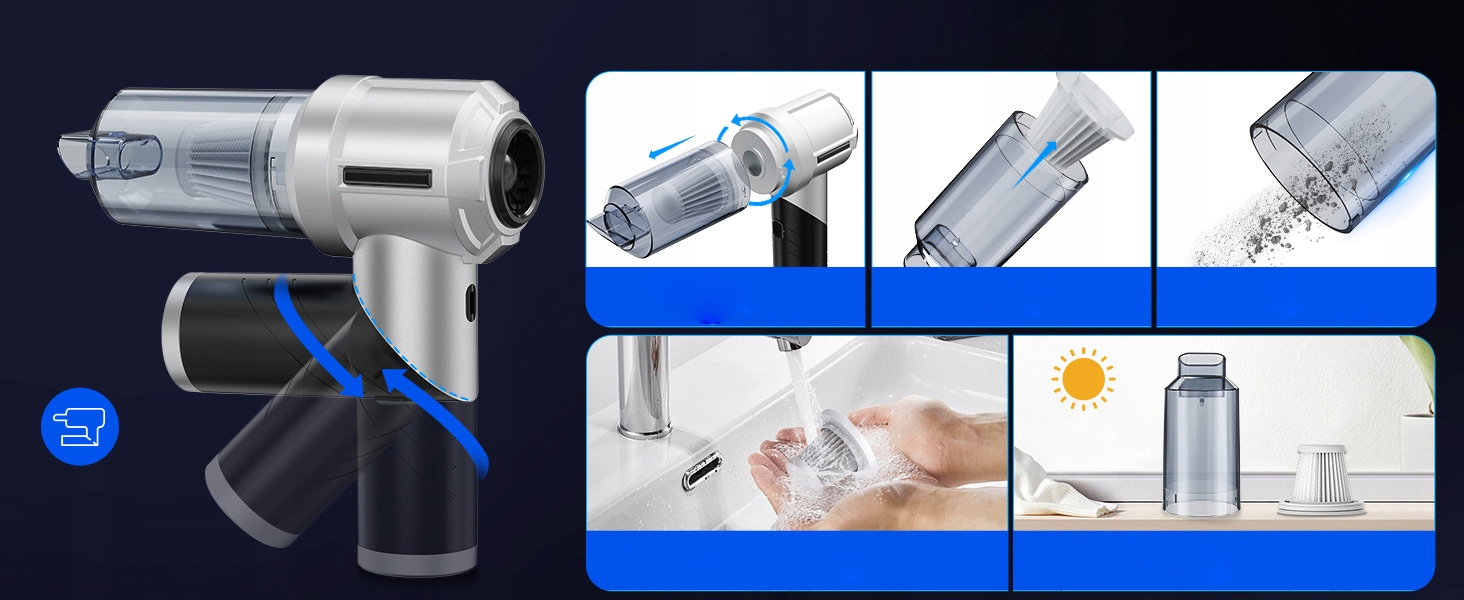 Складна структура Збереження місця: Наш портативний вакуумний очищувач руки характеризується інноваційною складовою структурою, що полегшує зберігати її в будь -якому куті будинку чи автомобіля. Завдяки цьому вам більше не потрібно хвилюватися, що це займе цінне місце.