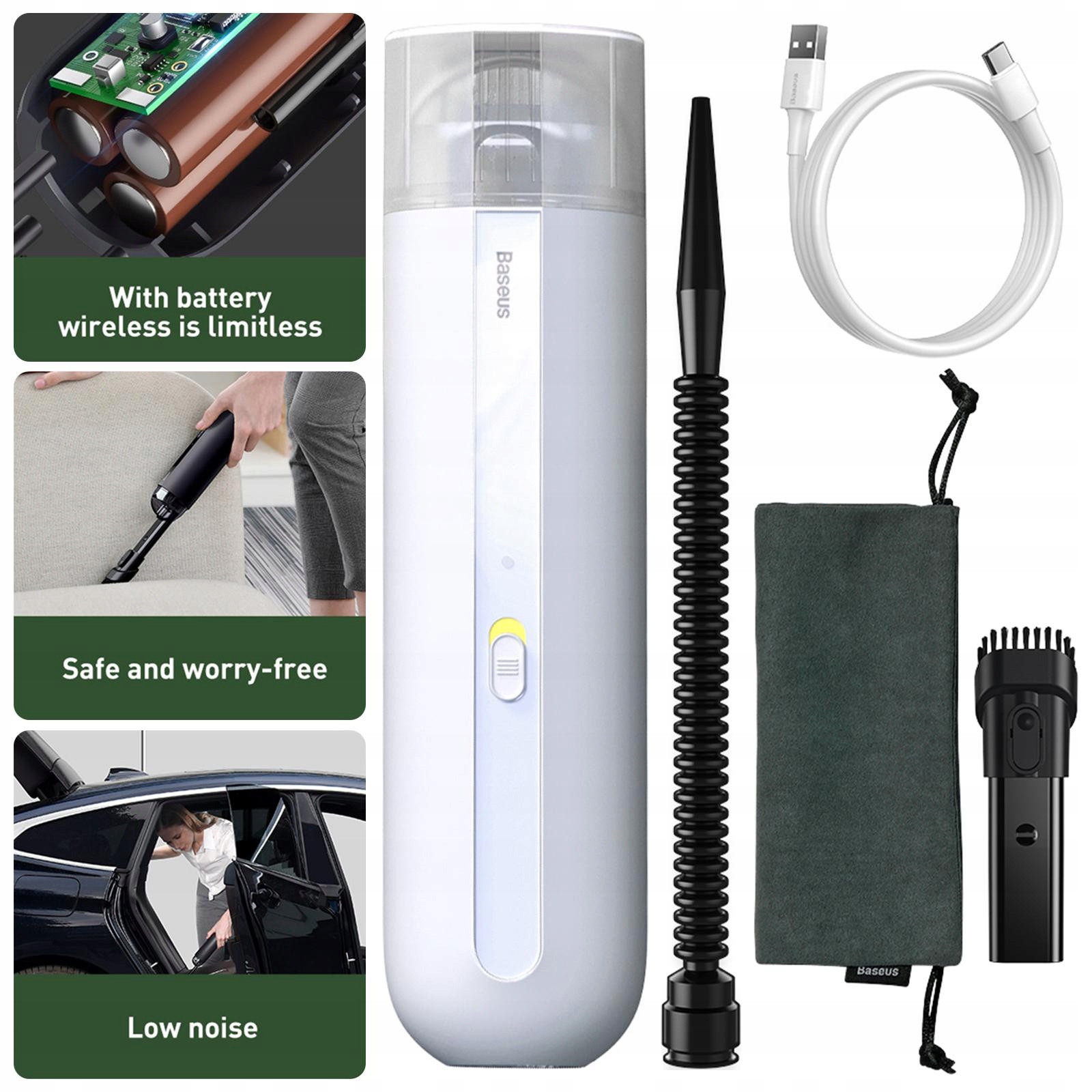 Портативний дизайн: бездротовий і портативний, ви можете носити його та чистити будь-де, як-от автомобільне сидіння, приладова панель автомобіля, вентиляційний отвір, диван удома, кухня, клавіатура, куток, вузькі вікна, рейки, вентиляційний отвір тощо. За допомогою шланга пил, прихований у щілинах, також можна видути для очищення.