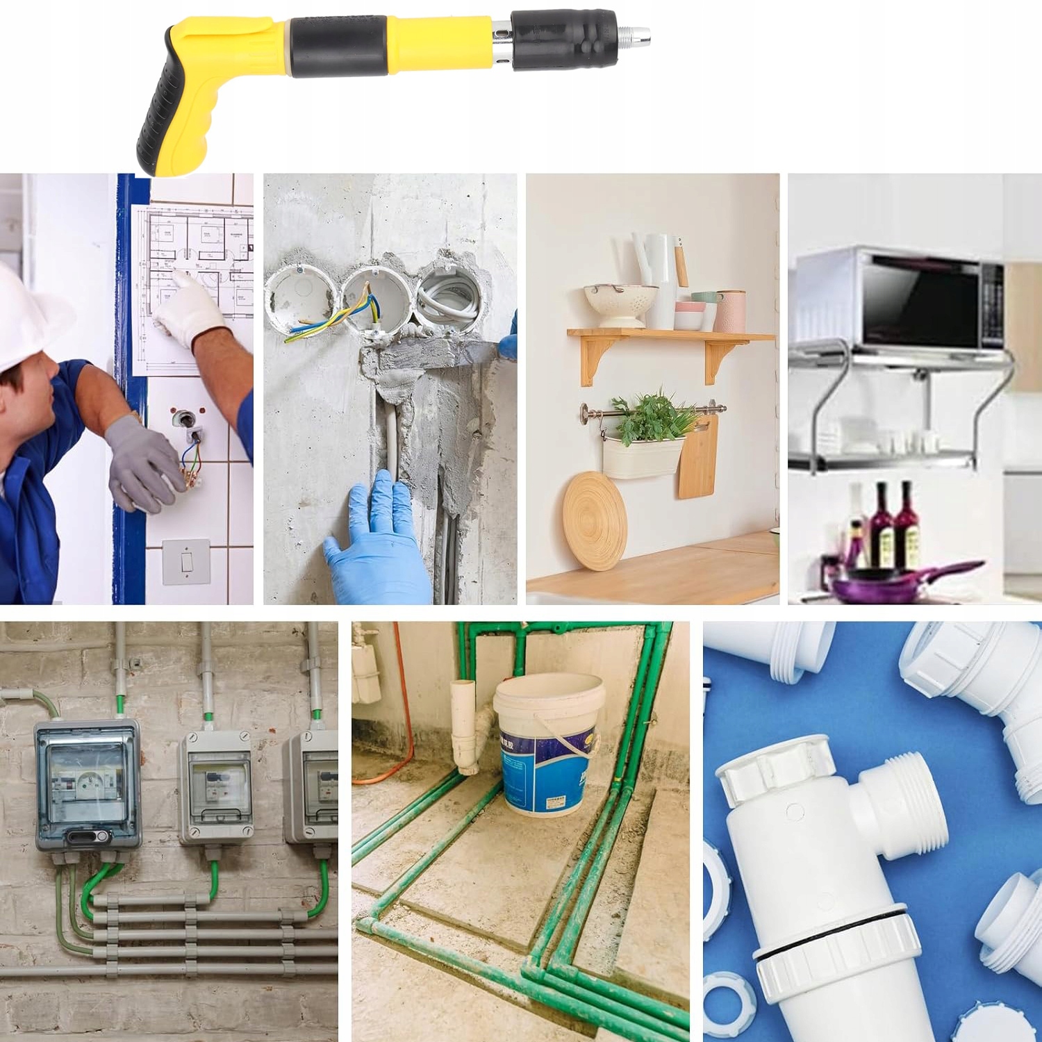 - Підходить для проектів DIY, прикраси дому , встановлення дверей та вікон, столярних виробів, встановлення обладнання, встановлення труб тощо, можна використовувати на масивних дерев’яних панелях, сталі, бетоні тощо.