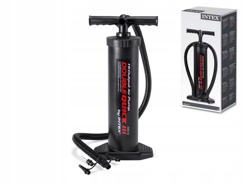 Незамінним вдома і під час подорожей є ручний насос від торгової марки Intex, завдяки якому ви зможете легко накачати надувні вироби. Він має три змінні наконечники, які підходять для будь-якого наповнювального клапана. Оснащений гнучким шлангом, що робить використання більш комфортним. Час відкачування максимально скорочено - насос двонаправлений і качає повітря рухами вгору і вниз.