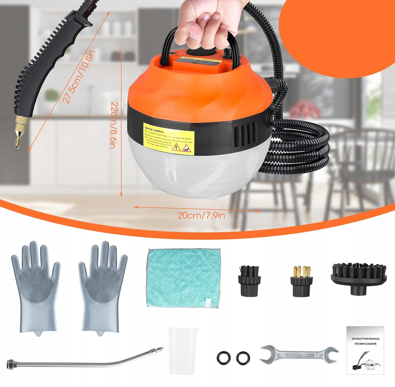 РУЧНИЙ ПОРТАТИВНИЙ ПАРОВИЙ ПИЛОСОС З 3 ЩІТКОВИМИ ГОЛОВКАМИ 2500W 1L 6 РІВНІВ