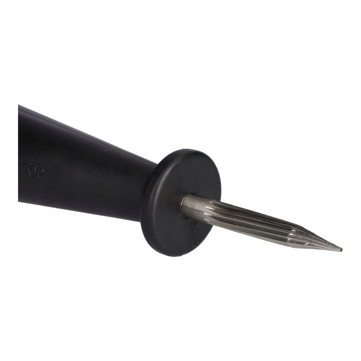 Різник додатково обладнаний ергономічною пластиковою ручкою, що значно полегшує роботу з цим інструментом. Завдяки цьому він забезпечує певне зчеплення, що має вирішальне значення під час точного видалення домішок з пошкоджених місць. пластикова ручка не тільки покращує комфорт використання, але й збільшує контроль над інструментом , що важливо при ретельній обробці отворів у шинах.