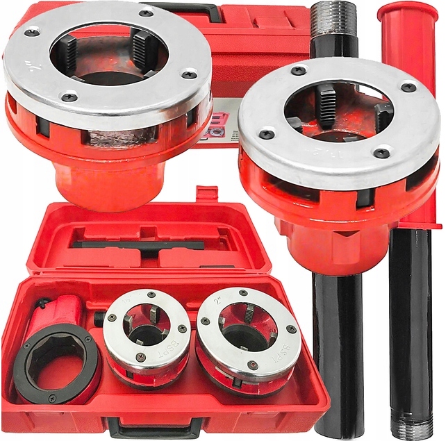 РУЧНИЙ КОМПЛЕКТ НАРІЗНИКІВ НА ТРУБИ З ДВОХ МАТРИЦІВ 1 1/2 ТА 2 ДЮЙМА З ХРАПОВИКОМ ТА ПОДОВЖУВАЧОМ