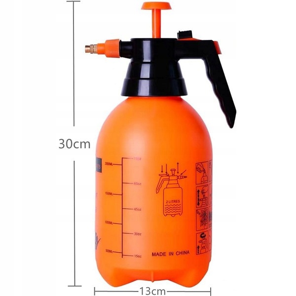 Цей 2-літровий ручний обприскувач під тиском, яскравого помаранчевого кольору, має регульовану латунну насадку, ідеальну для різноманітних садових і домашніх робіт. Ергономічний дизайн забезпечує зручність використання та ефективність