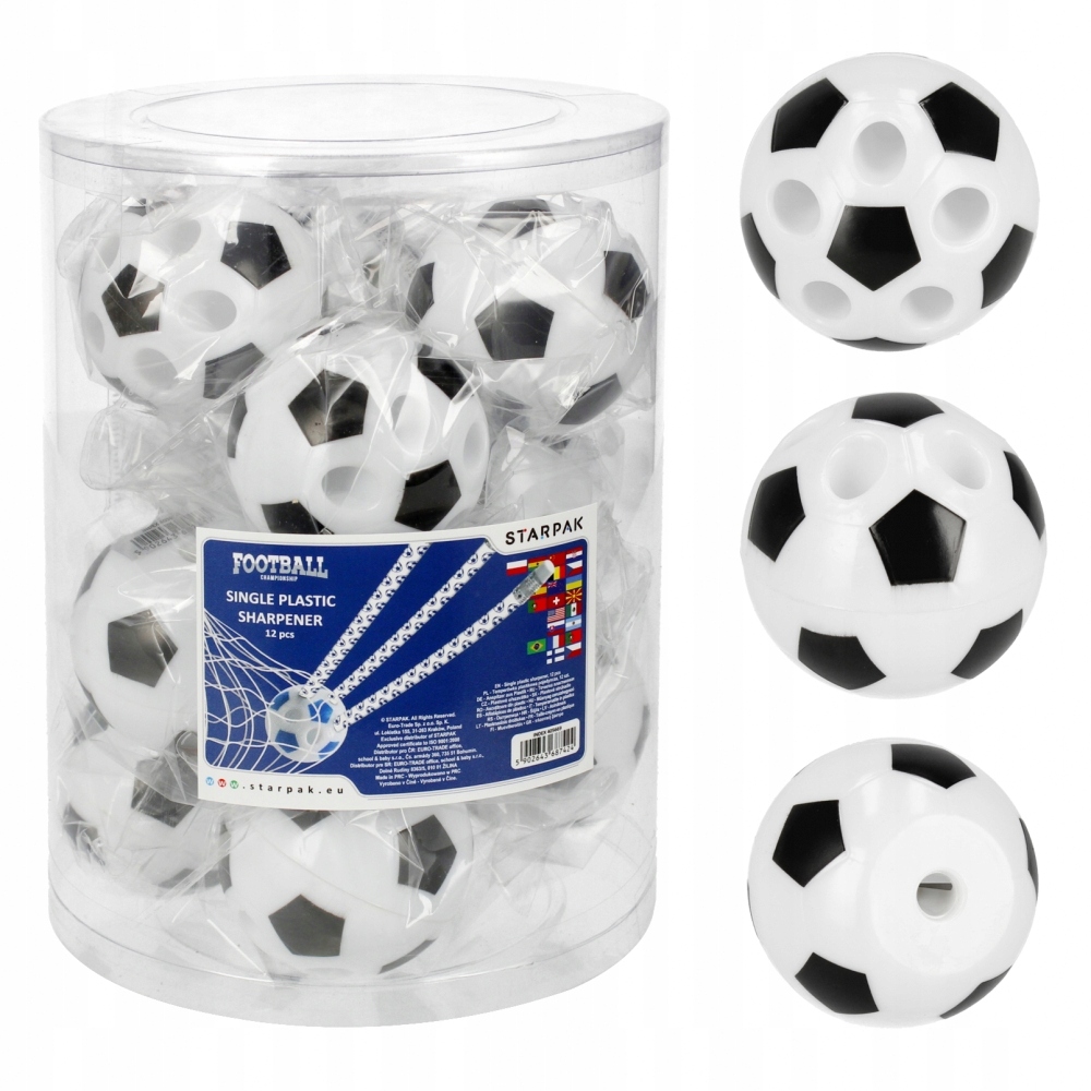 Переваги продукту: футбольний футбол у формі м'яча з багатьма впусками для загострених олівців та олівців. Важливий елемент кожної шкільної митоти. Пластикове лезо. Упаковка вага 0,29 кг. Розміри продукту довжина x висота x глибина см 5х5х5. Вага товару кг. 0,02 кг.